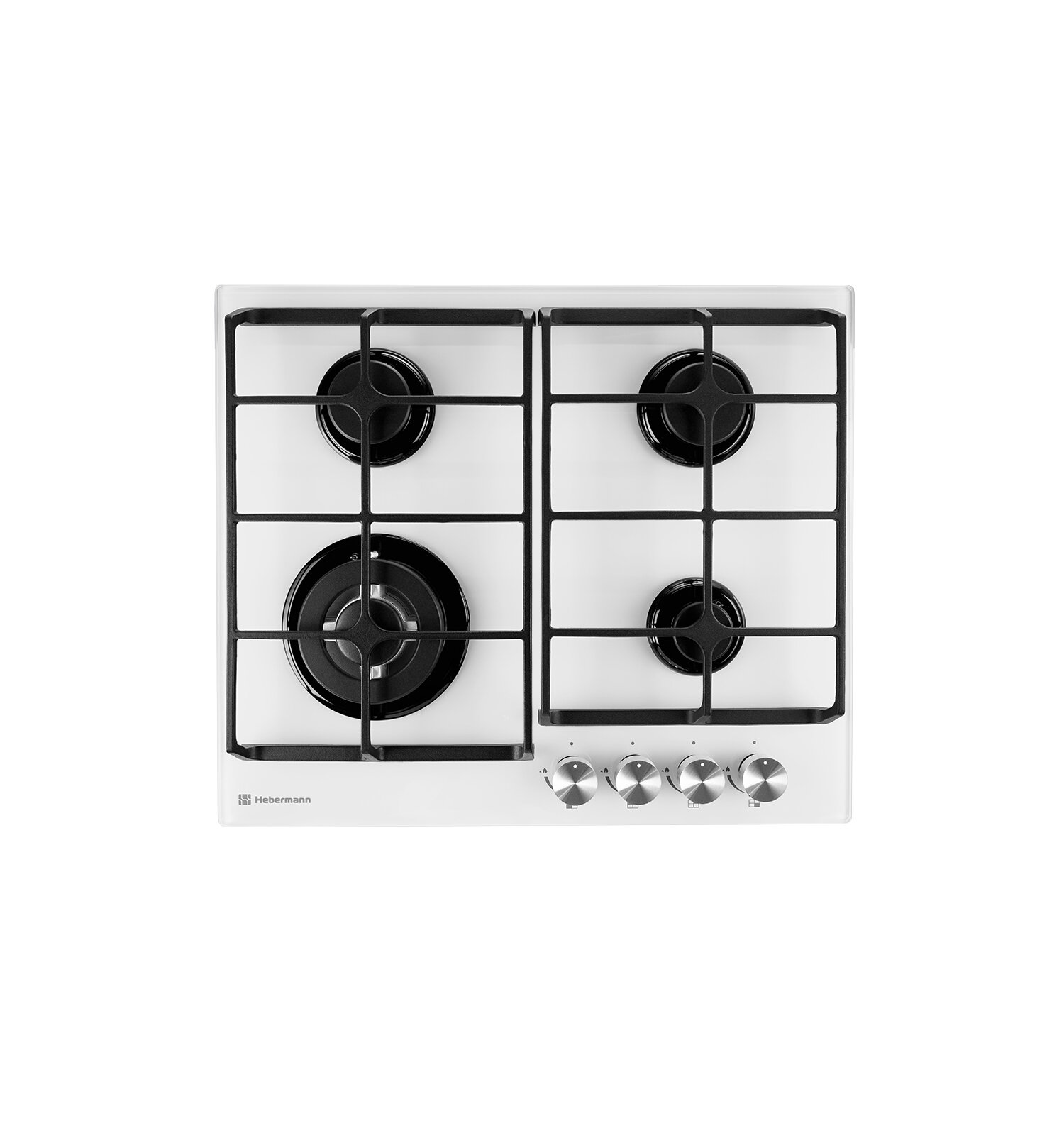 Купить Варочная панель, газовая 4 конфорки Hebermann HBGG 604.1 W,Материал поверхности: Закалённое стекло Материал решёток: Чугун Термостойкие ручки Hitech Управление: Механическое, Электроподжиг, Газ-контроль