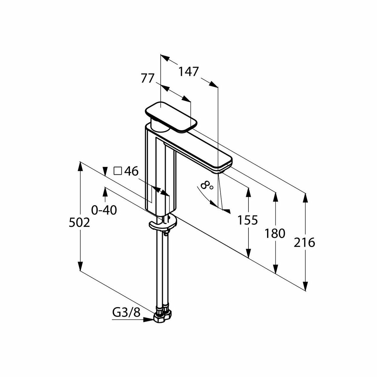 Смеситель для умывальника E2 XL, без д/к (хром) 492960575 Kludi