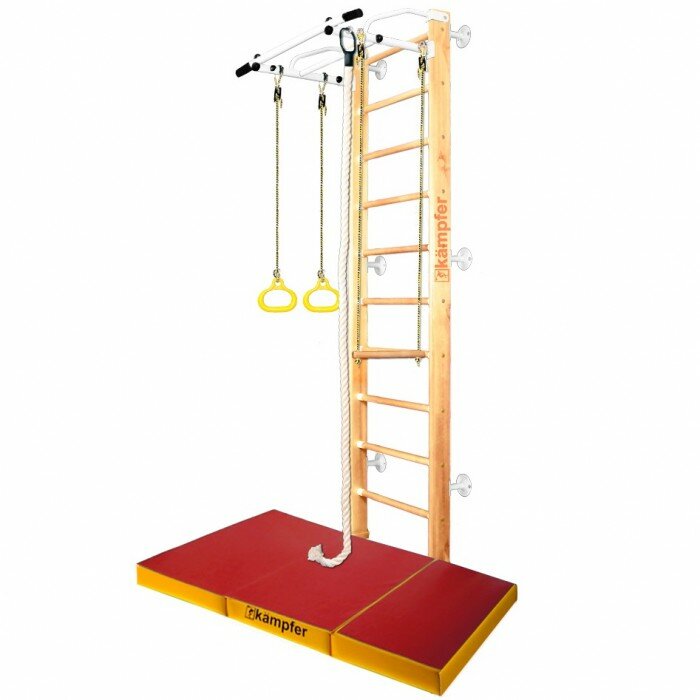 Шведская стенка Kampfer Helena Wall c матом №6 №1 натуральный, турник c матом №6 красный, желтый