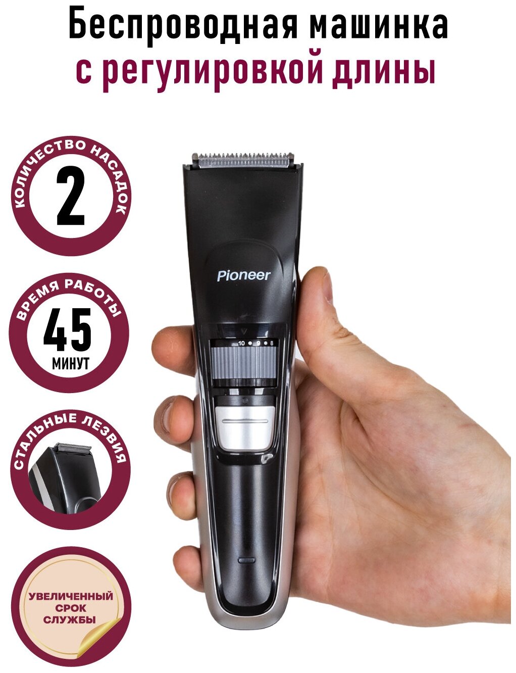 СохранитьМашика для стрижки волос PIONEER HC01R 2 насадки 0.5-10мм, 10.5-20мм, стальные лезвия интересное: