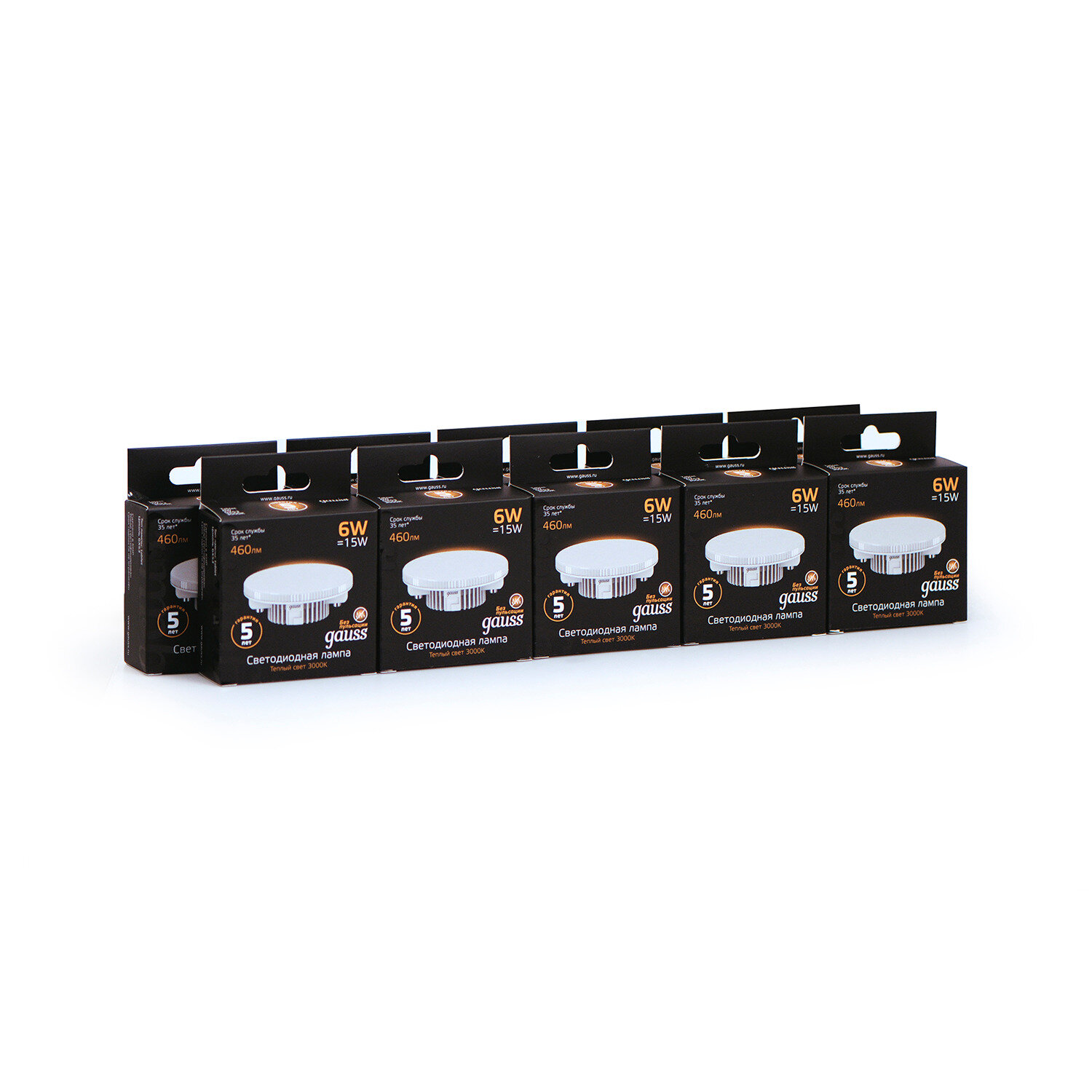 Лампочка светодиодная GX53 6W теплый свет 3000К упаковка 10 шт. Gauss Black
