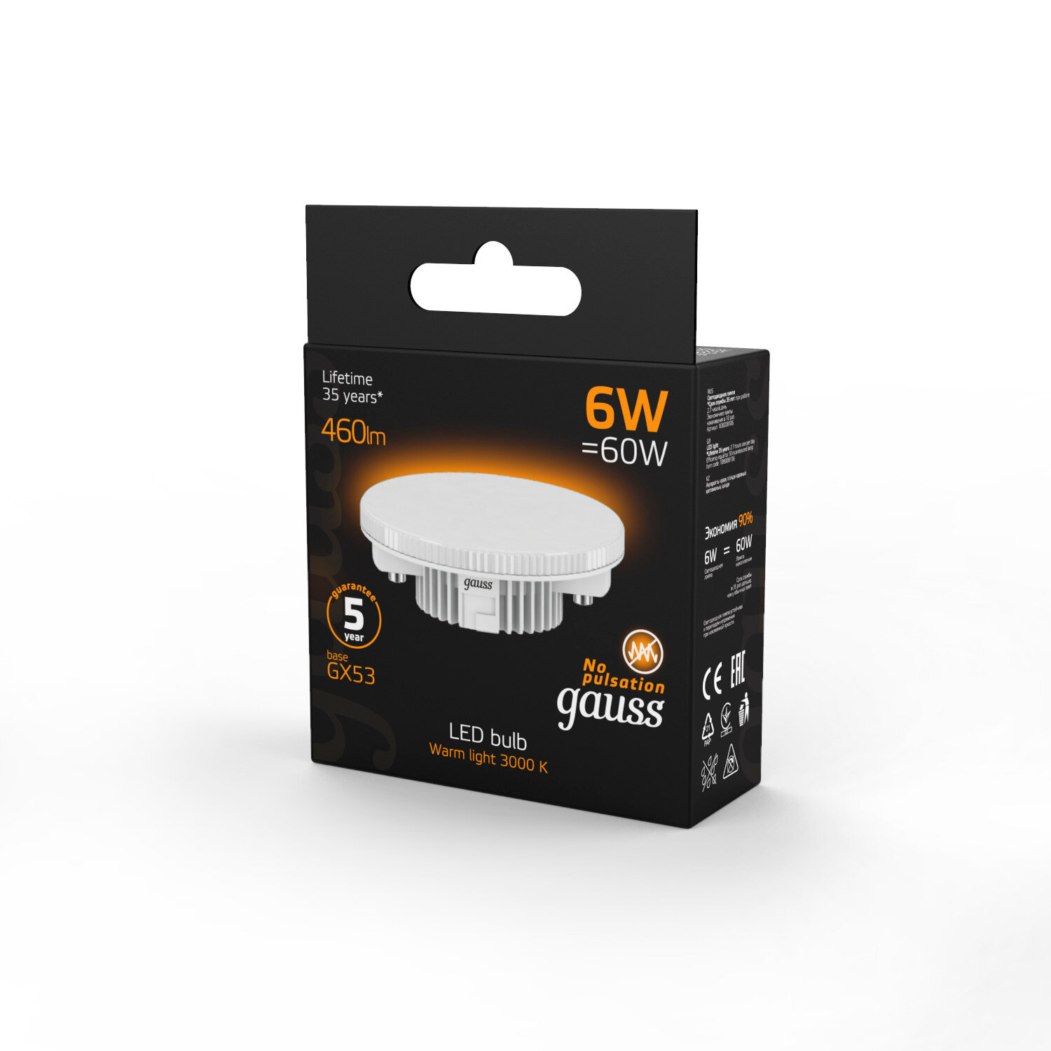 Светодиодная лампа Gauss Лампа LED GX53 6W 460lm 3000K (упаковка 10 шт.)