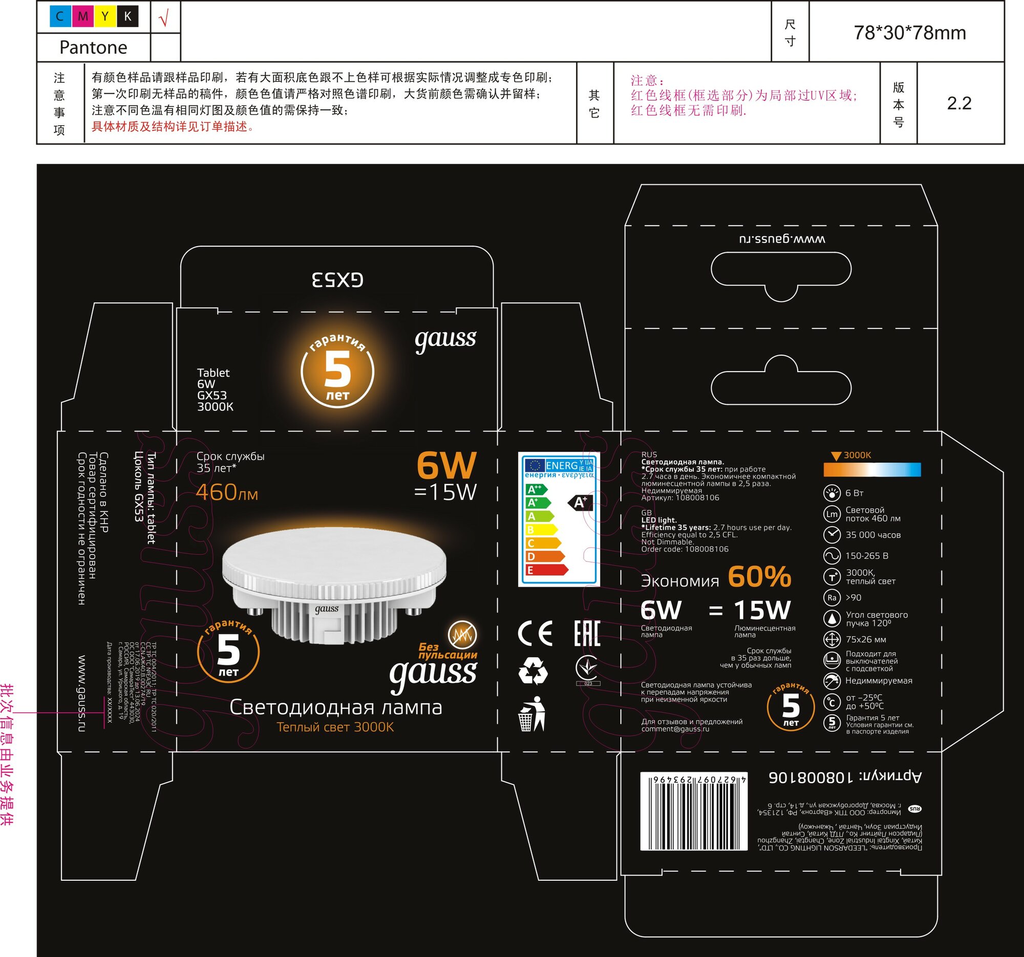 СохранитьЛампочка светодиодная GX53 6W теплый свет 3000K упаковка 10 шт. Gauss интересное: