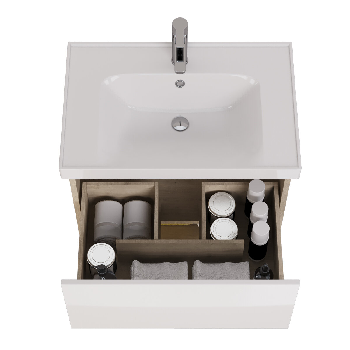 Тумба Dreja.eco Perfecto 70, подвесная, 1 ящик, дуб эврика/белый глянец