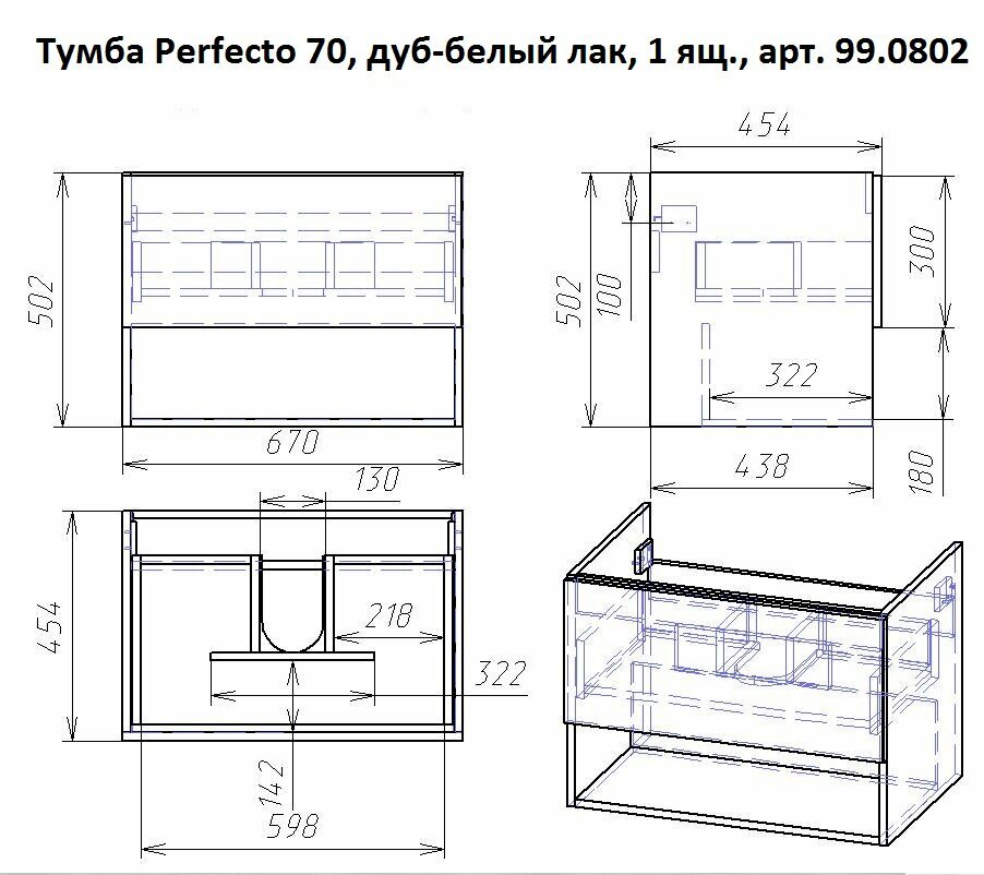 СохранитьТумба Dreja Perfecto 70, 99.0812, подвесная, 1 ящик, дуб эврика/белый глянец интересное: