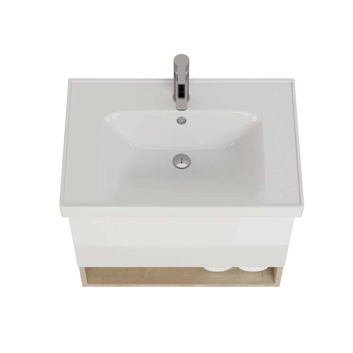 Тумба под раковину Dreja Perfecto 70 с ящиком, дуб эврика/белый глянец (99.0812)
