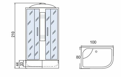 Душевая кабина Мономах мономах 100/80/44 С МЗ R, 100*80*210, асимметричная