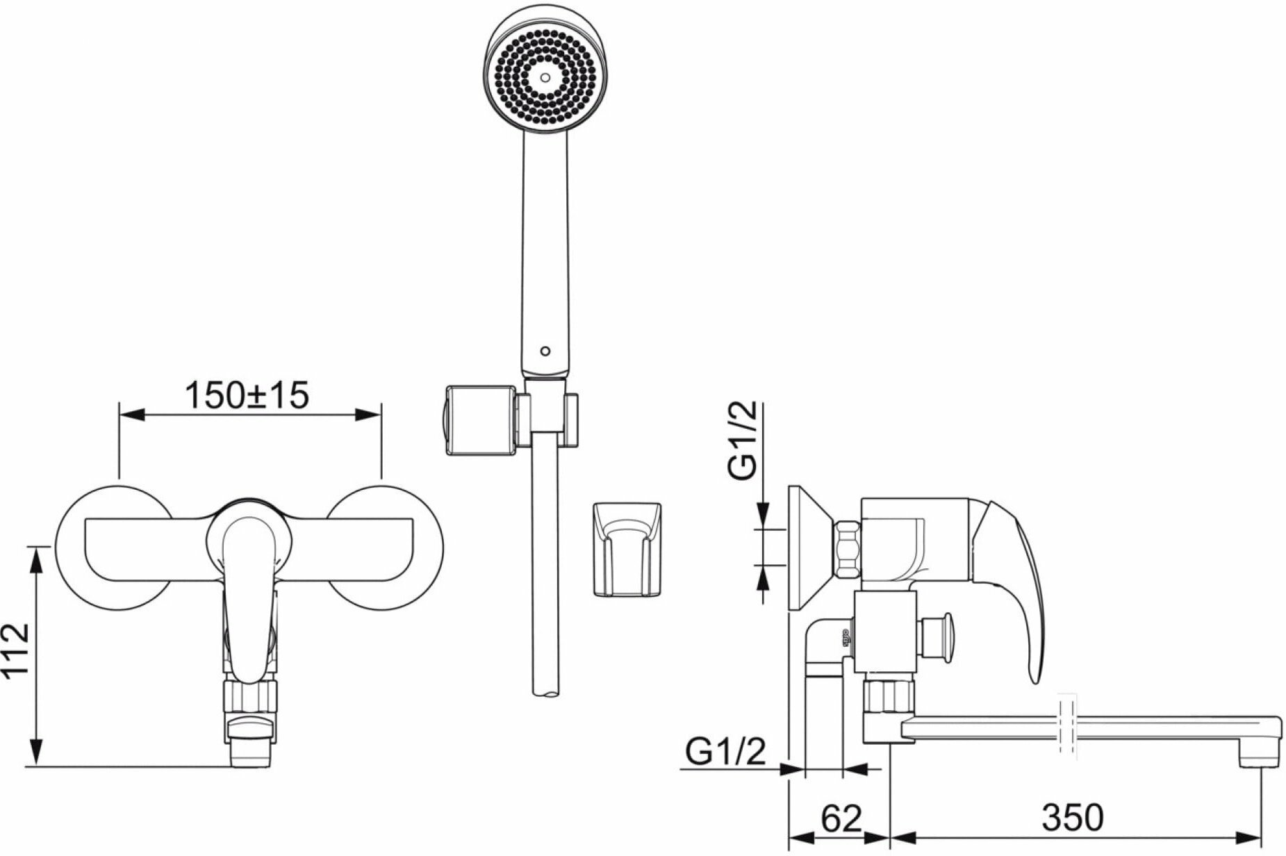 Смеситель для ванны и душа с длинным изливом и душевым комплектом Oras Polara 1447Y