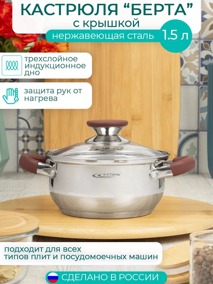 СохранитьКастрюля 1,5 л катунь, берта, КТ15-D-16, индукция, нерж.сталь, зеркальная полировка интересное: