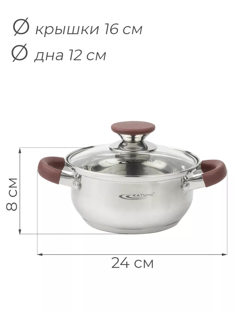 Кастрюля из нержавеющей стали Катунь Берта с крышкой диаметр 18см объем 2л / посуда для всех видов плит