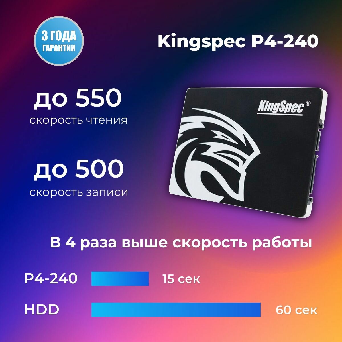 Внутренний SSD 2.5" KingSpec 240Gb P4 Series /P4-240/ (SATA3, up to 550/520MBs, 3D NAND, 50TBW)