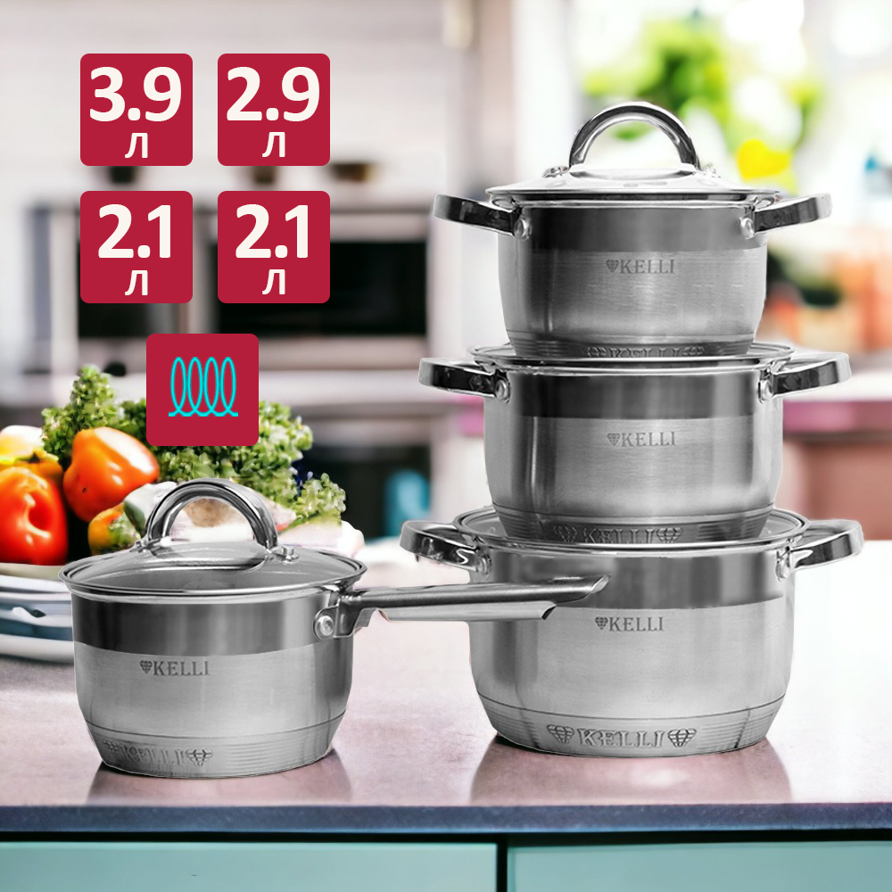 Набор посуды Kelli KL-4245 8 пр. серебристый 8 шт. 4.25 кг интересное: