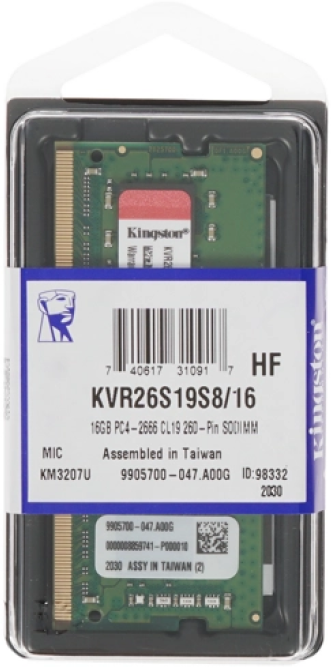 Модуль памяти SO-DIMM DDR 4 DIMM 16Gb PC21300, 2666Mhz, 1.2V, Kingston (KVR26S19S8/16) (retail)