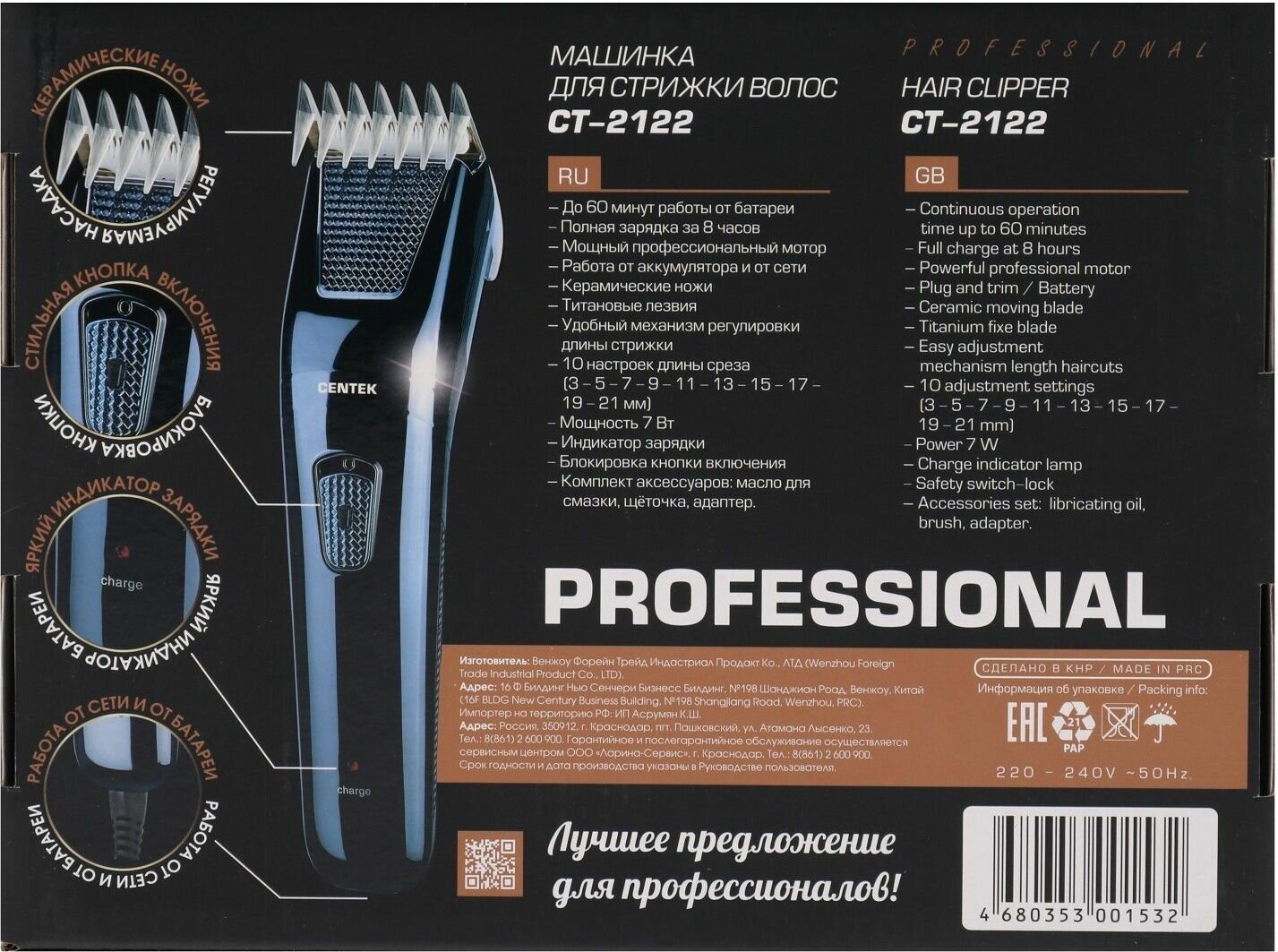 Ниже Вы можете прочитать отзывы на Машинка для стрижки Centek CT-2122 /сеть/аккум. до 60мин, 3-21мм, ознакомится с подробными характеристиками, посмотреть интересные обзоры и фотографии на Машинка для стрижки Centek CT-2122 /сеть/аккум. до 60мин, 3-21мм.