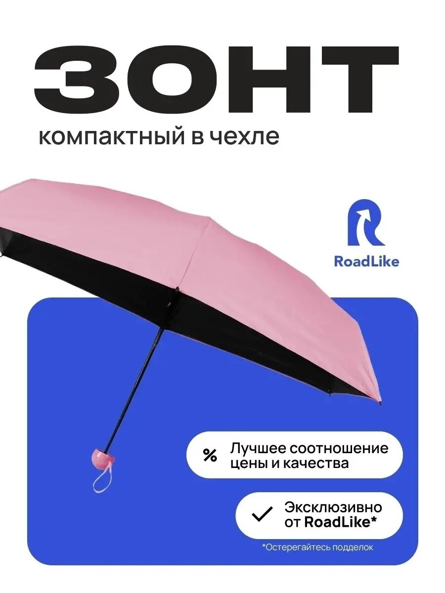 Купить Зонт компактный в чехле RoadLike розовый .