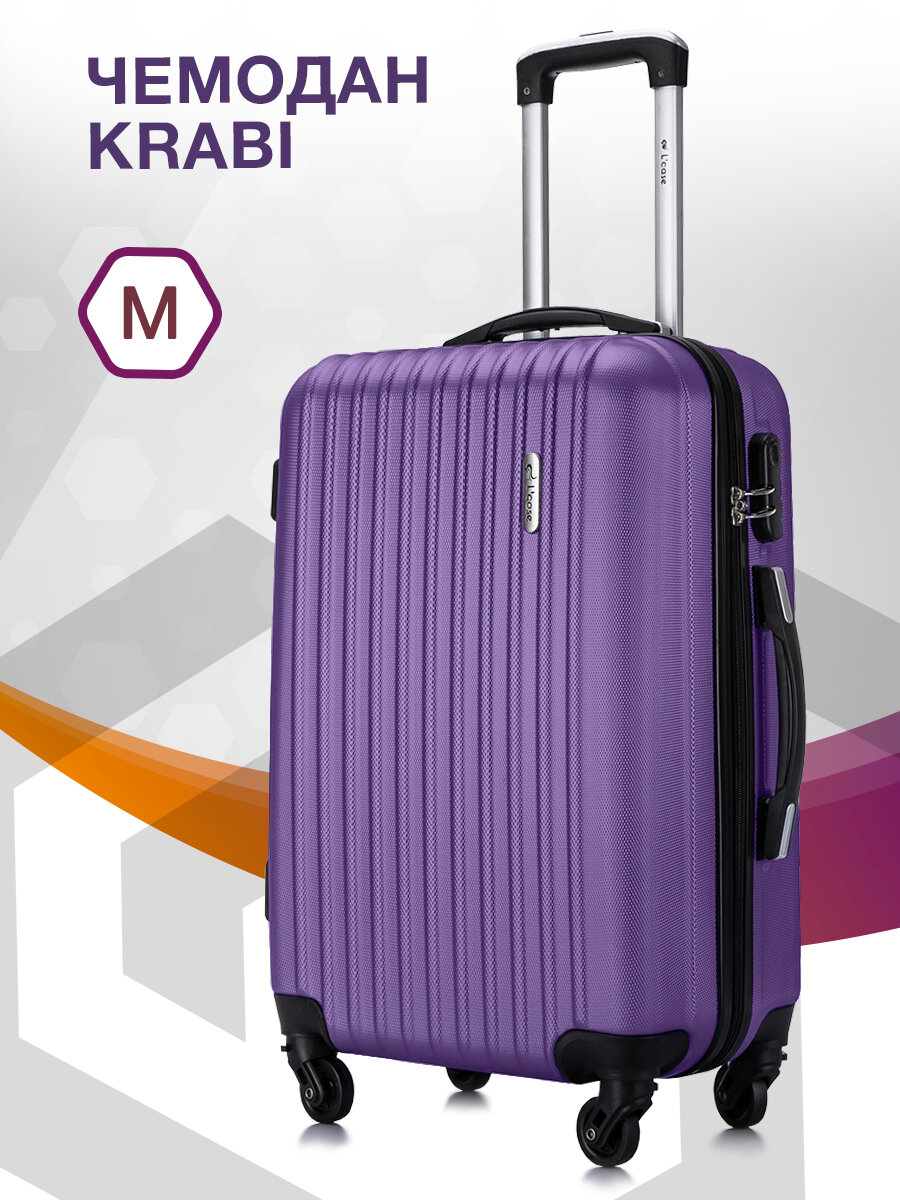 Купить Чемодан на колесах L case Krabi, Фиолетовый. Средний M, АВС пластик. Дорожный чемодан на колесиках для путешествий и поездок.