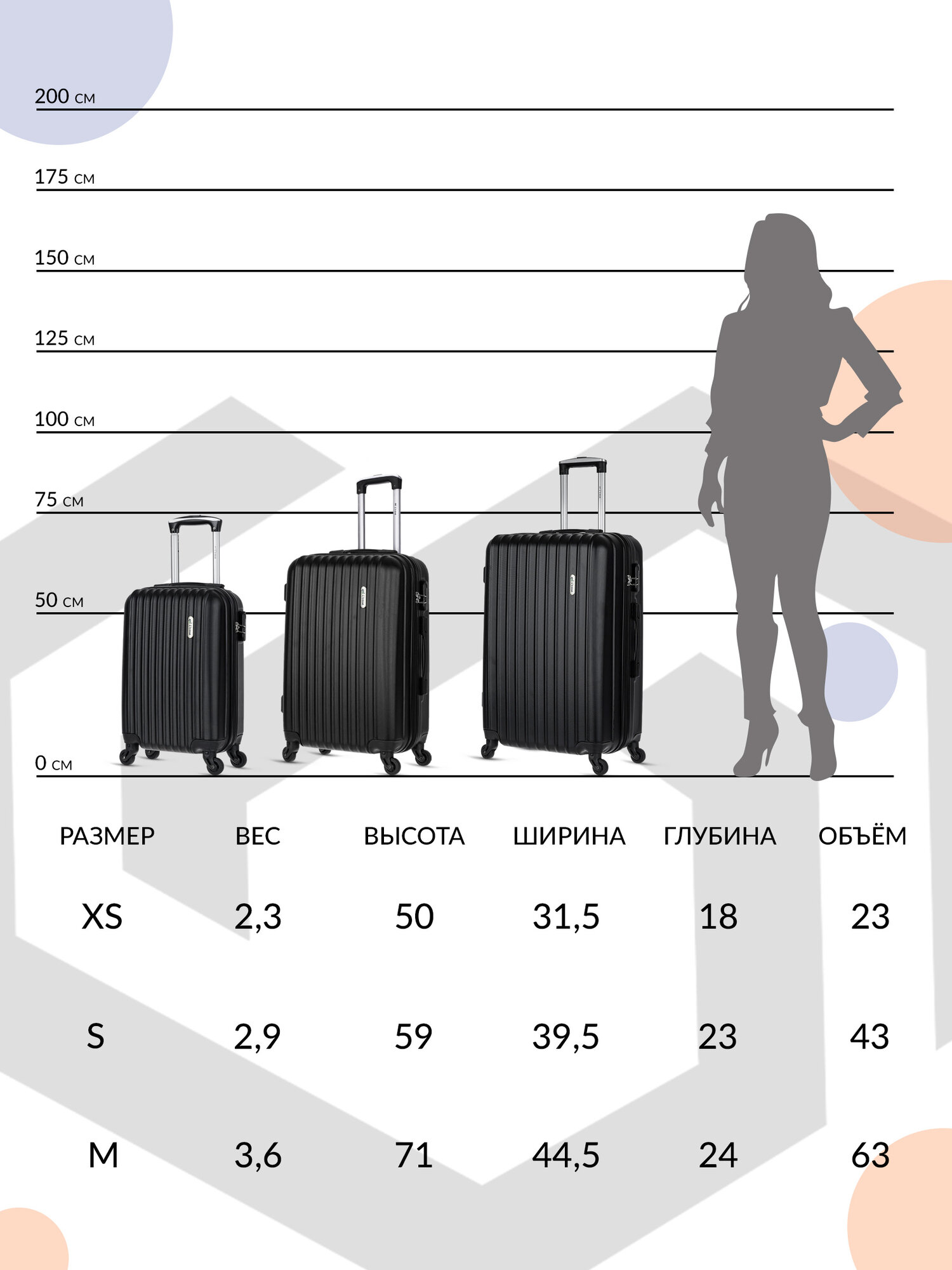 Чемодан на съемных колесах средний М пластиковый Krabi, дорожный, ударопрочный, кодовый замок, семейный 71см, 63л