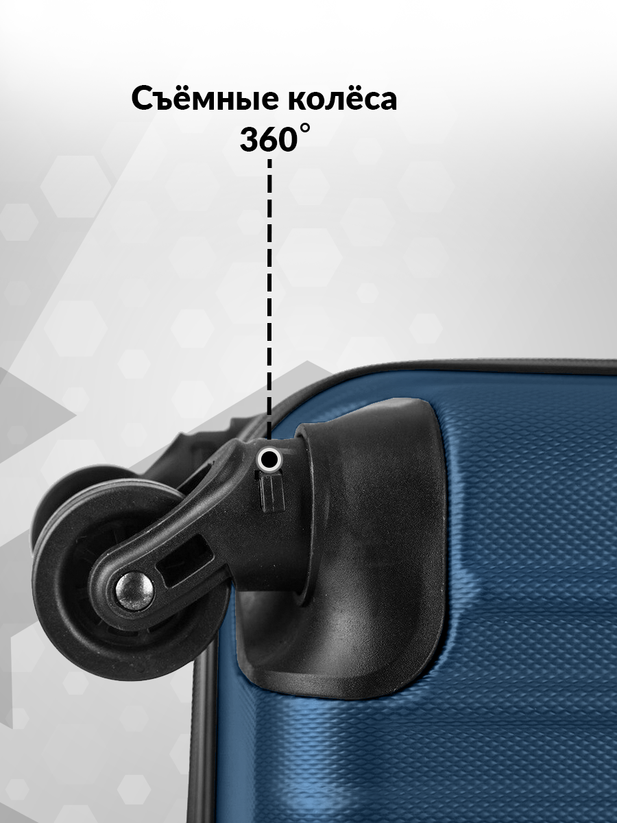 Чемодан на съемных колесах средний M Krabi, ABS пластик, дорожный, ударопрочный, синий, кодовый замок, ручная кладь, 71 см, 63 л