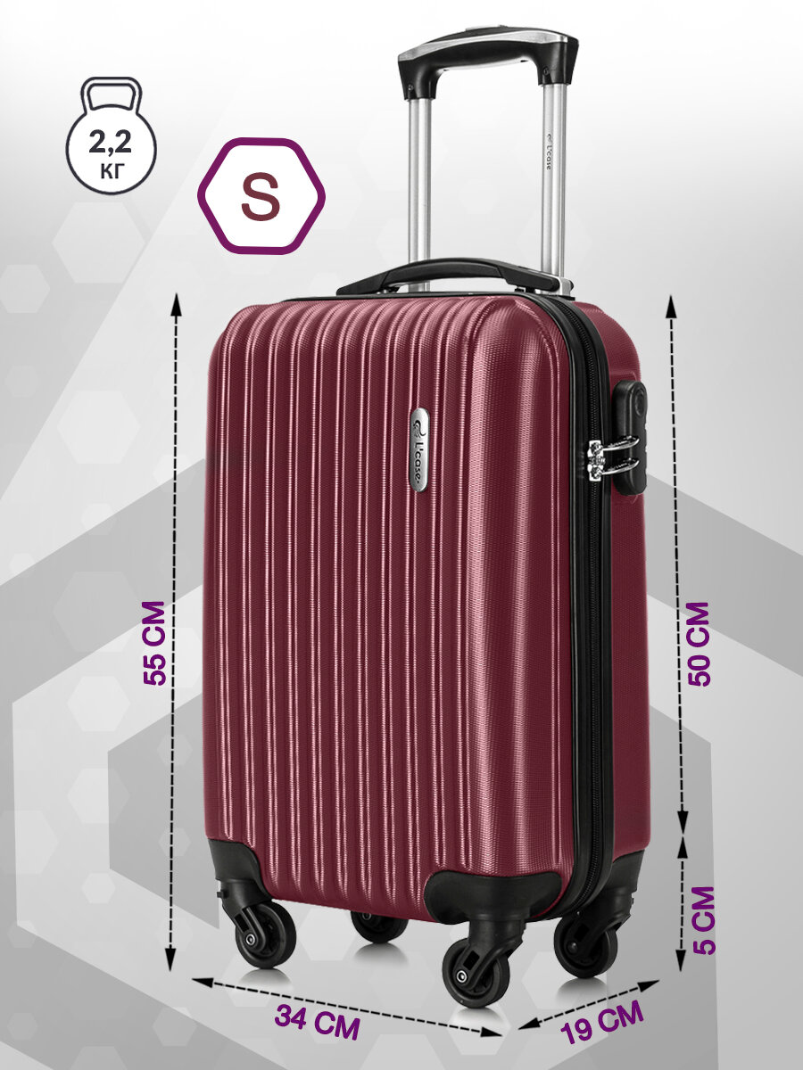 Чемодан на колесах ручная кладь L case Krabi, Красный. Маленький S, АВС пластик. Дорожный чемодан на колесиках для путешествий и поездок.
