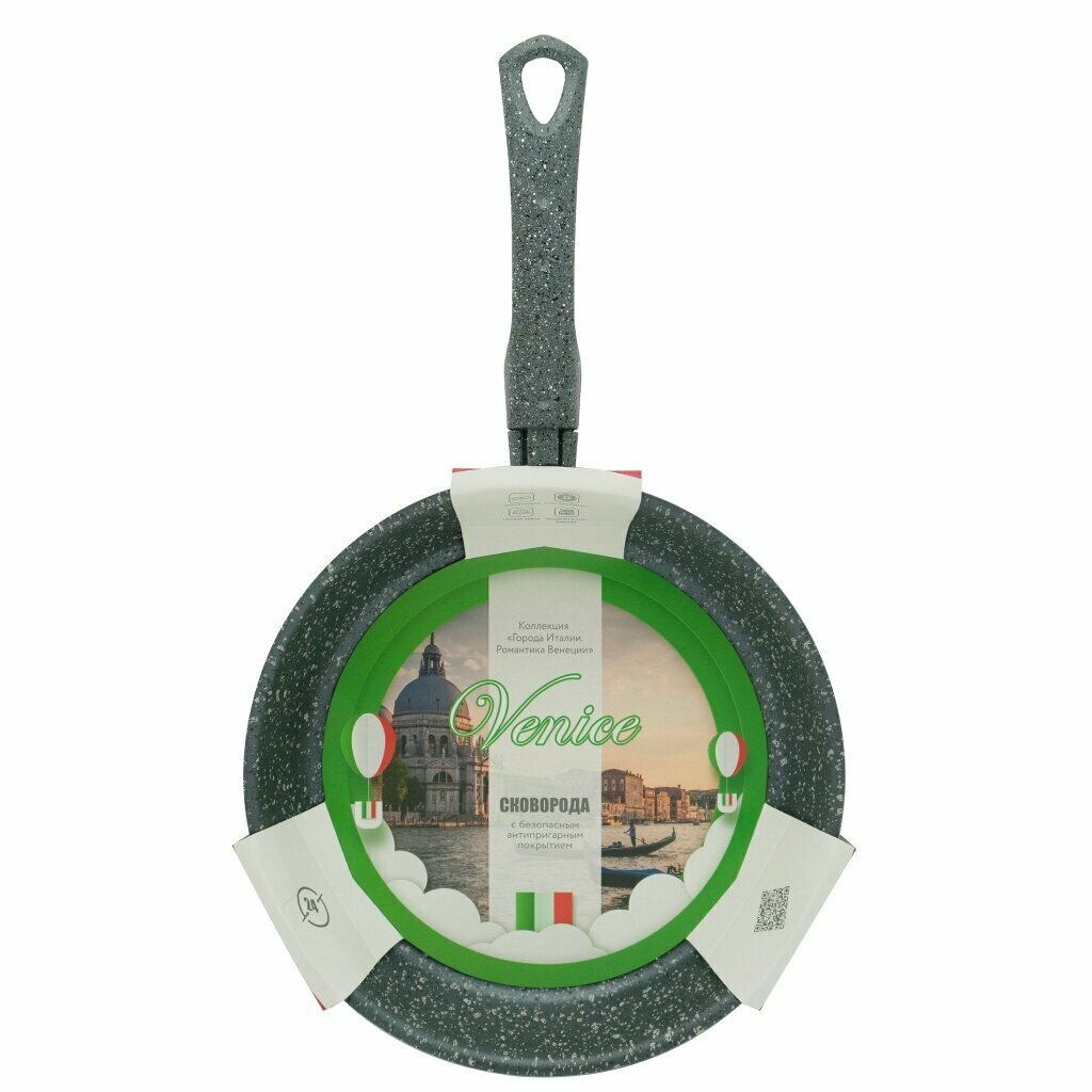 Сковорода алюминий, 24 см, антиприг, Vari, Романтика Венеции, серый гранит, GIG17124