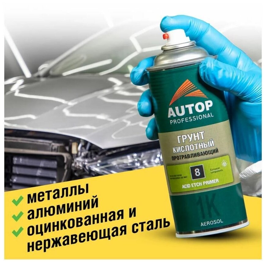 AUTOP Professional, Грунт кислотный протравливающий №8, зелёный, баллон аэрозоль 520 мл