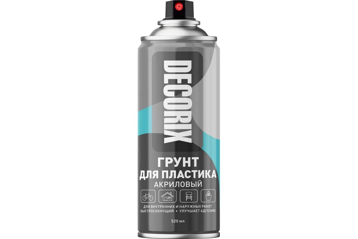 Decorix Аэрозольная акриловая грунтовка для пластика (матовый, белый, 520мл)