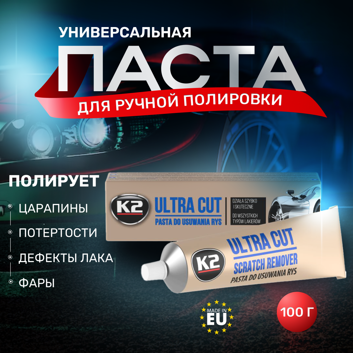 СохранитьK2 ULTRA CUT - Полировальная паста для кузова и фар, восстановительная (100 гр). интересное: