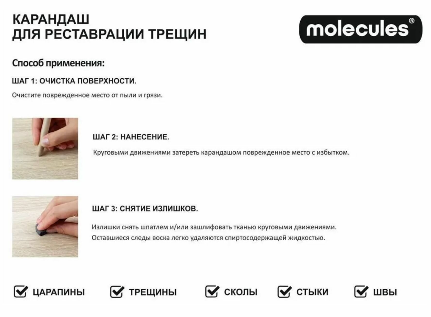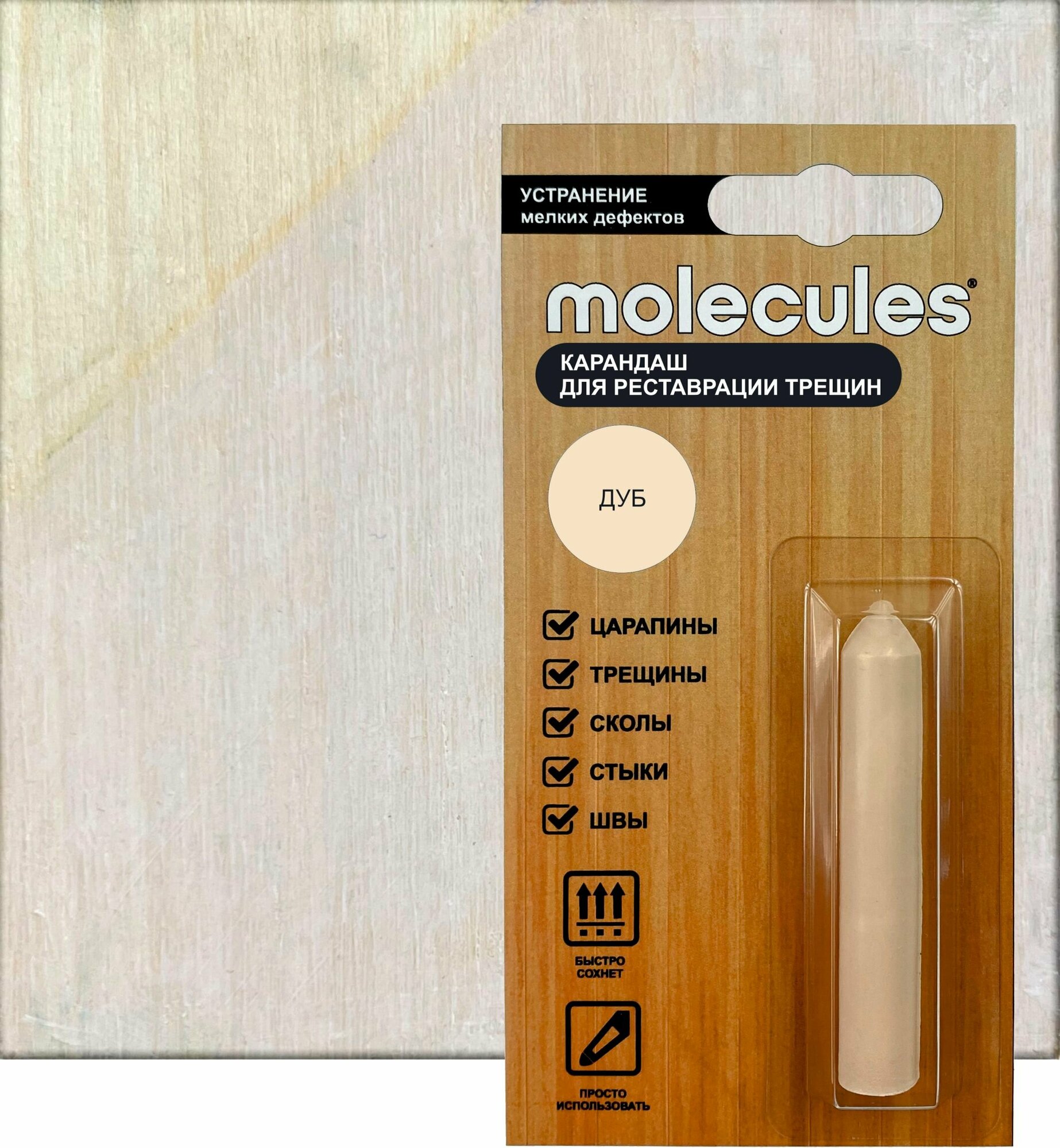 Карандаш для реставрации трещин Molecules цвет дуб 5.5 г интересное:
