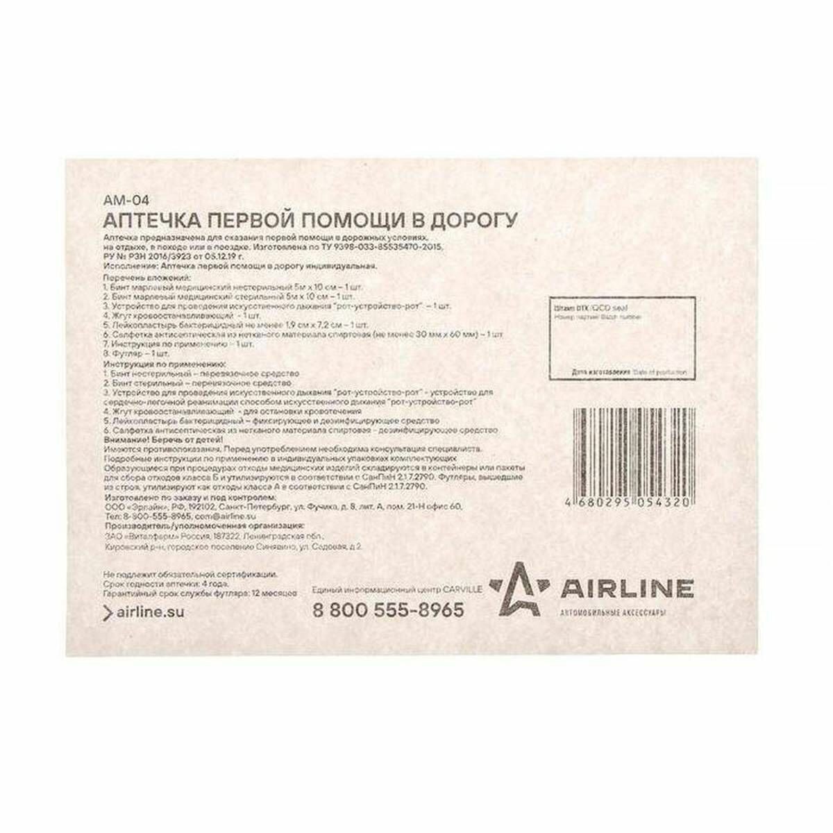 AIRLINE / am04 / Аптечка первой помощи в дорогу, пластиковый футляр (РУ №РЗН 2016/3923 от 05.04.2016)