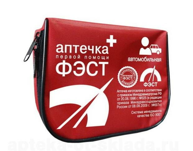 Аптечка автомобильная ФЭСТ футляр из полистирола, новый состав по приказу № 1080Н от 08.10.20
