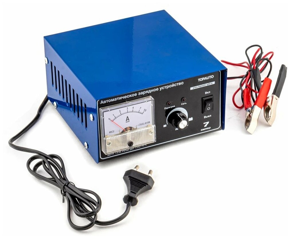 Автоматическое зарядное устройство Топ Авто "7А", 7А, для 12В-АКБ до 95 Ач, стрелочная индикация, ручная регулировка
