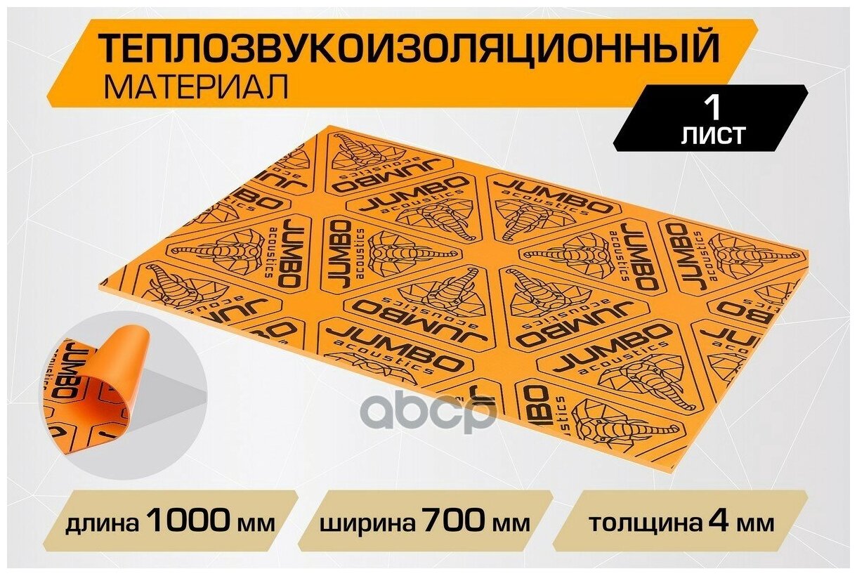 JUMBO F04001R1 Теплозвукоизоляционный лист JUMBO acoustics 4.0 (размеры 4 х 700 х 1000 мм, упаковка 1 шт.)