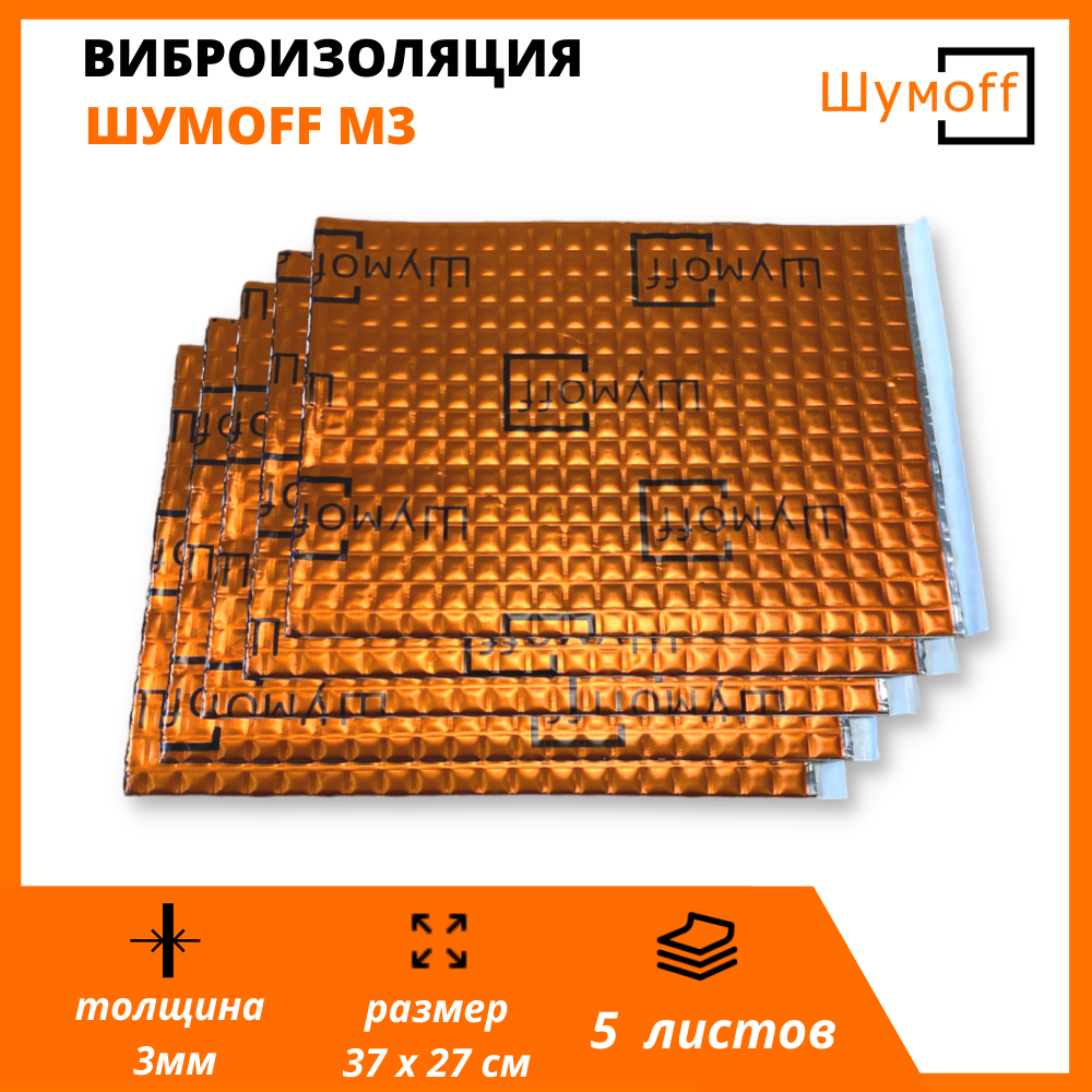 Виброизоляция Шумоff M3 / Шумоизоляция автомобиля / квартиры / дачи (5 листов / 0,5кв.м)