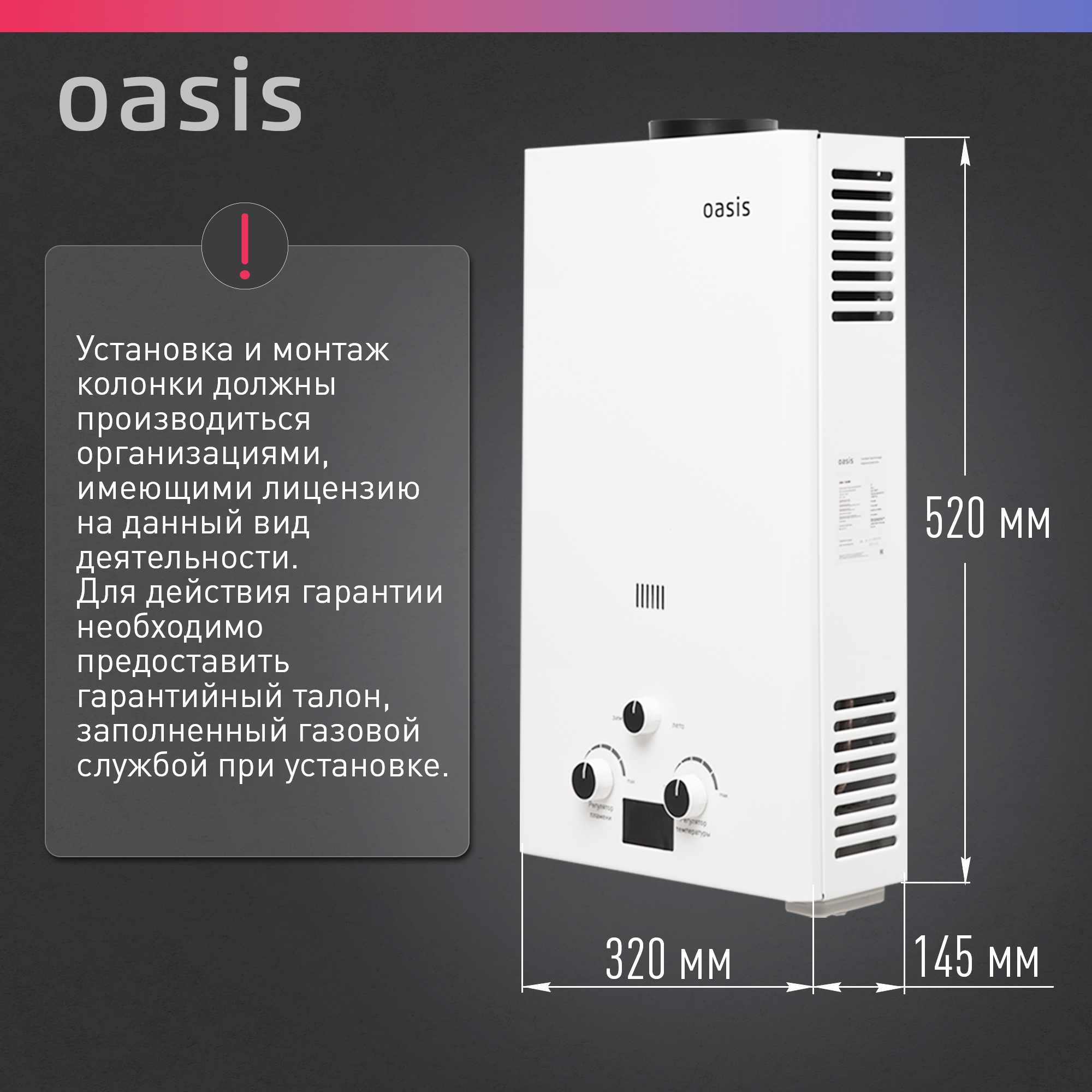 OASIS Газовый проточный водонагреватель OR - 16W 4670004230039