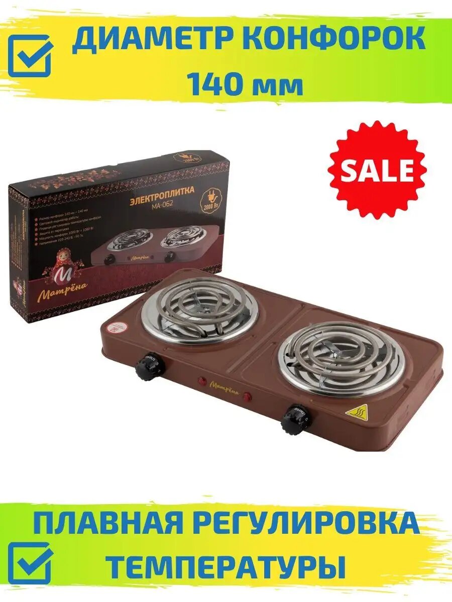 Электроплитка Матрёна МА-062, коричневый, ТЭН, 2 конфорки