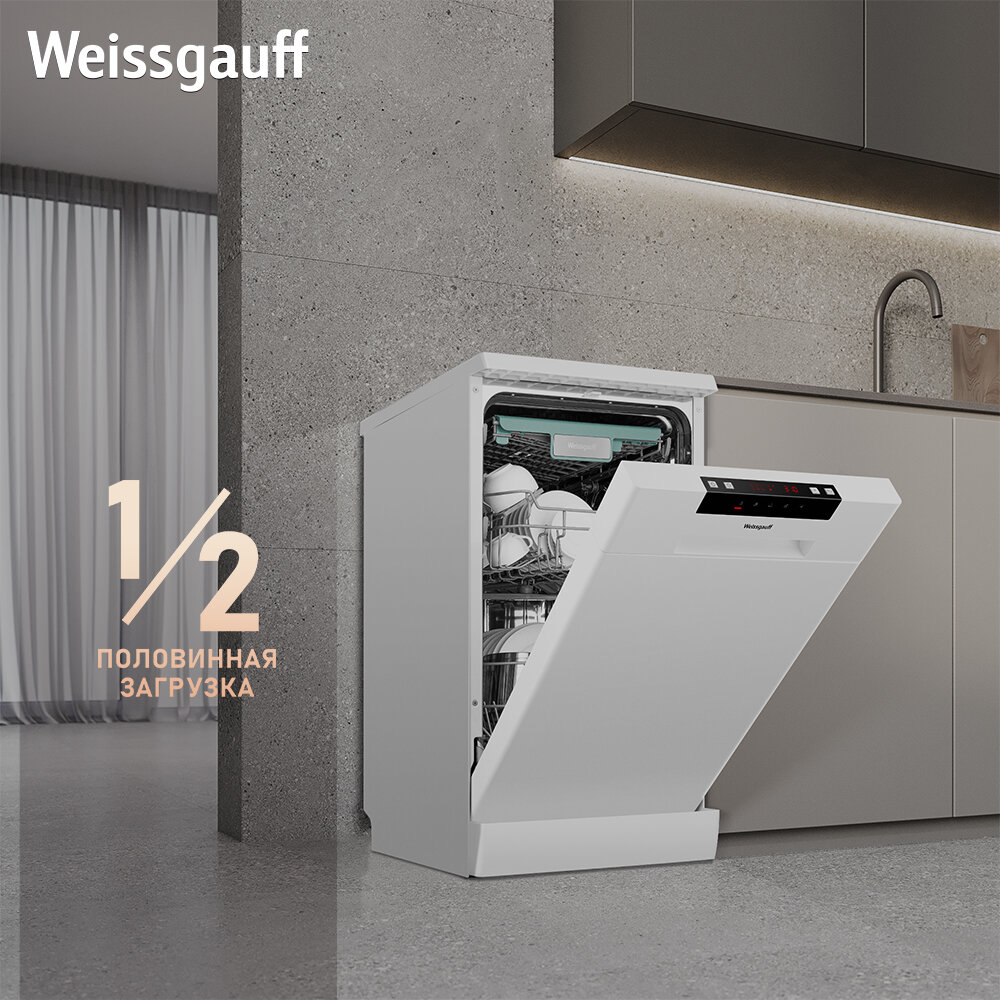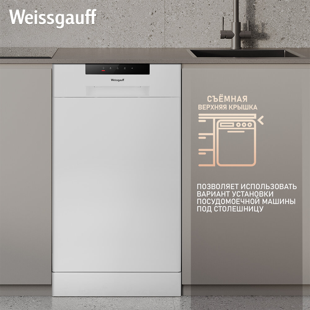 Посудомоечная машина WEISSGAUFF DW 4035, узкая, напольная, 44.8см, загрузка 10 комплектов, белая [426331]