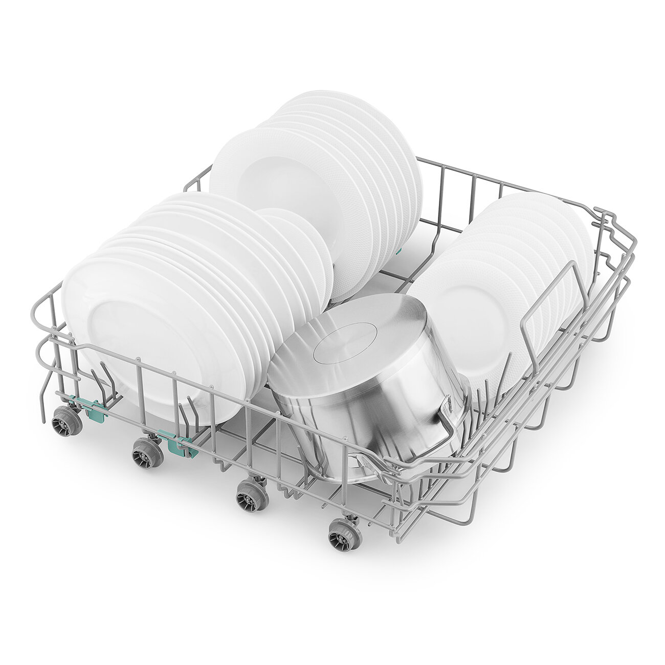 Также очень здорово, что в лотках некоторые держатели для посуды можно убрать. Например, в нижнем лотке можно сложить держатели для тарелок. Это позволит уместить в посудомойку даже кастрюли |