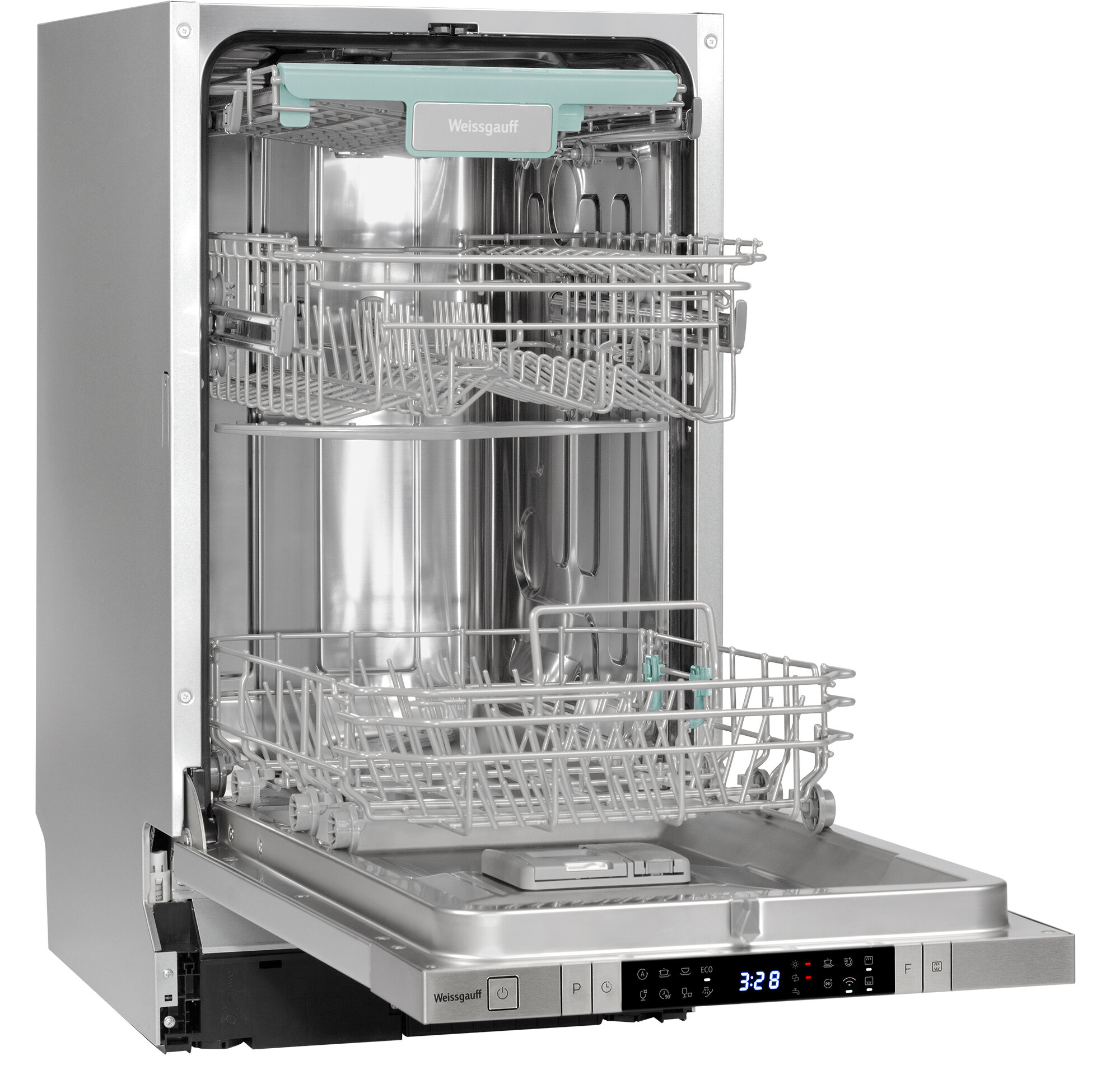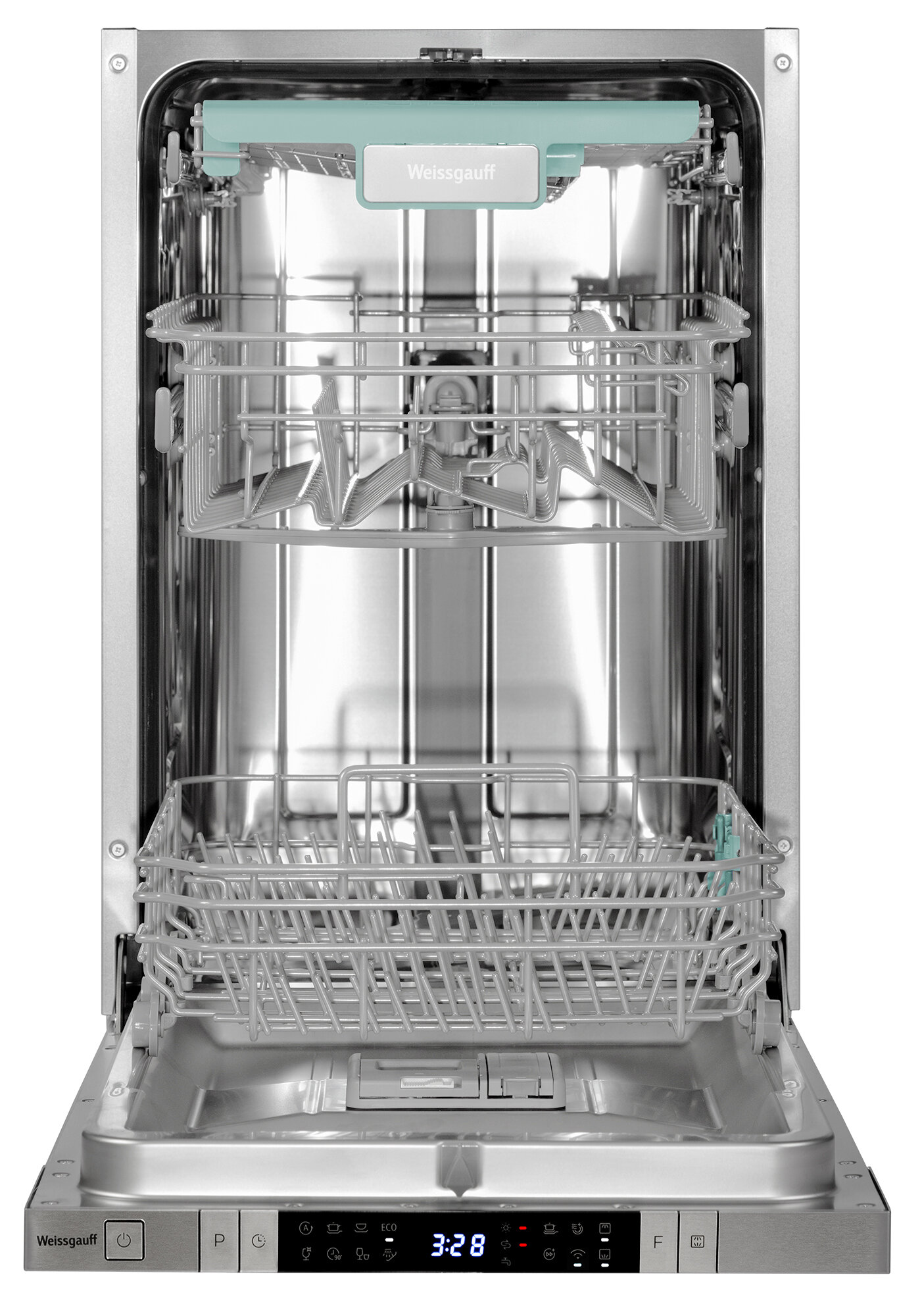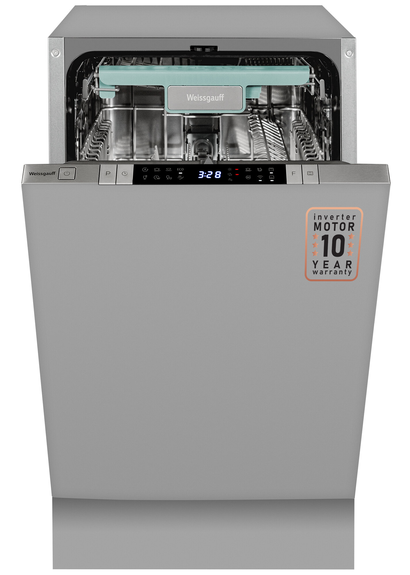 Умная встраиваемая посудомоечная машина с Wi-Fi, лучом на полу, авто-открыванием и инвертором Weissgauff BDW 4150 Touch DC Inverter Wi-Fi (модификация 2024 года),3 года гарантия, 3 корзины, 10 комплектов, 8 программ, полная защита от протечек