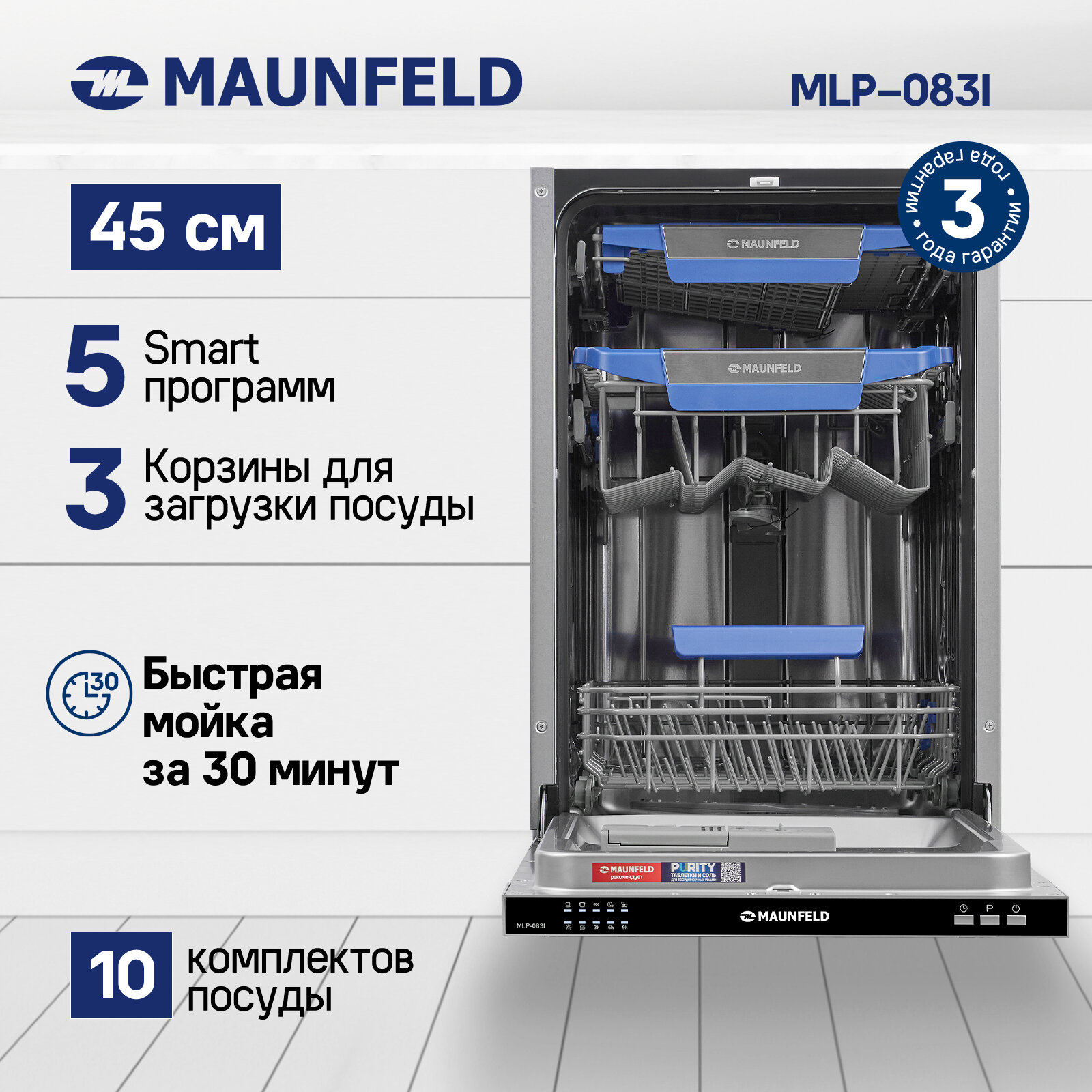 Посудомоечная машина встраив. Maunfeld MLP-083I