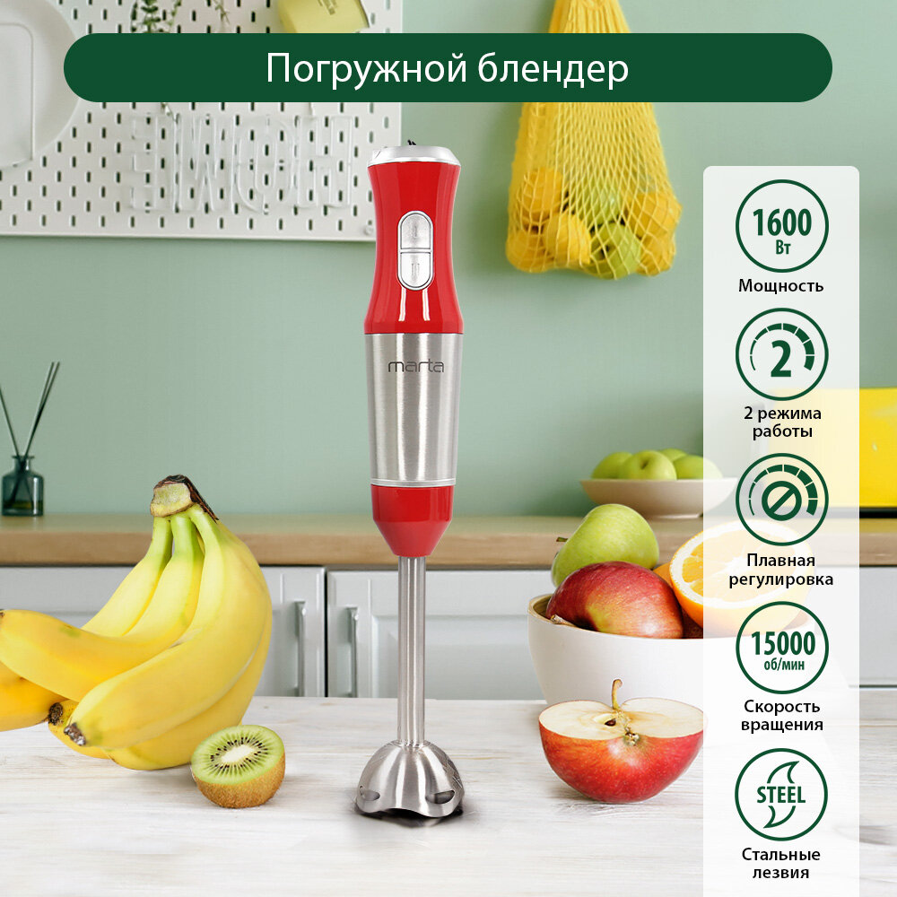 Блендер погружной MARTA MT-1574 1200 Вт, красный коралл