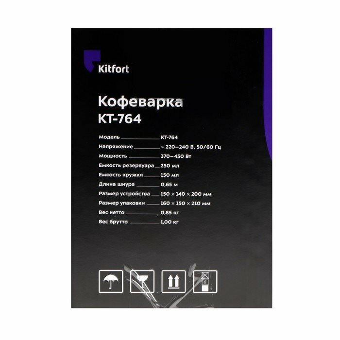 Кофеварка Kitfort КТ-764, капельная, 450 Вт, 0.25 л, чёрная