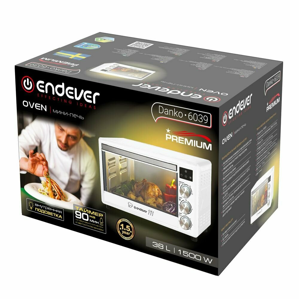 Мини-печь ENDEVER Danko 6039 white (Мощность 1500Вт, объем 38 л, температура до 320 °С) (90215)