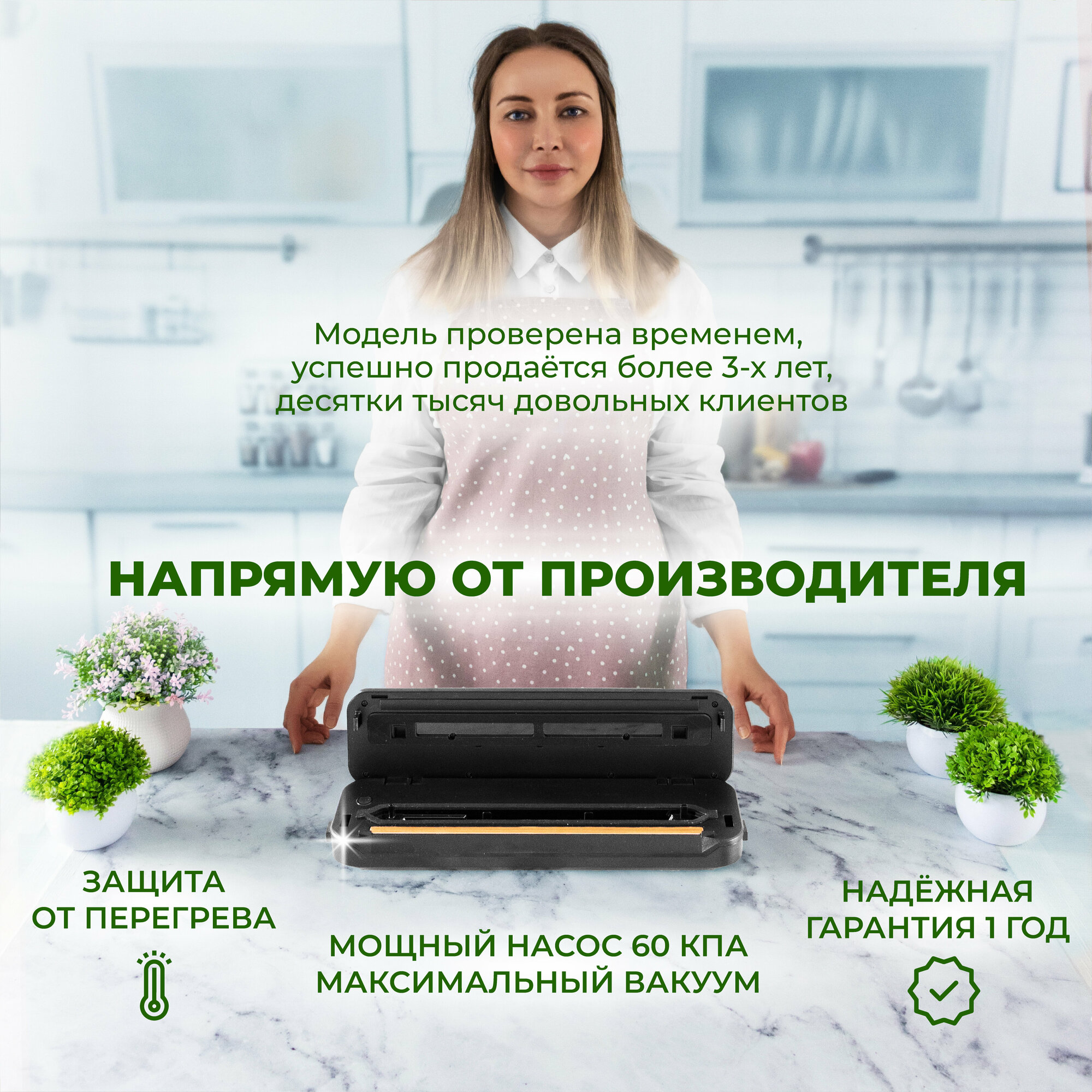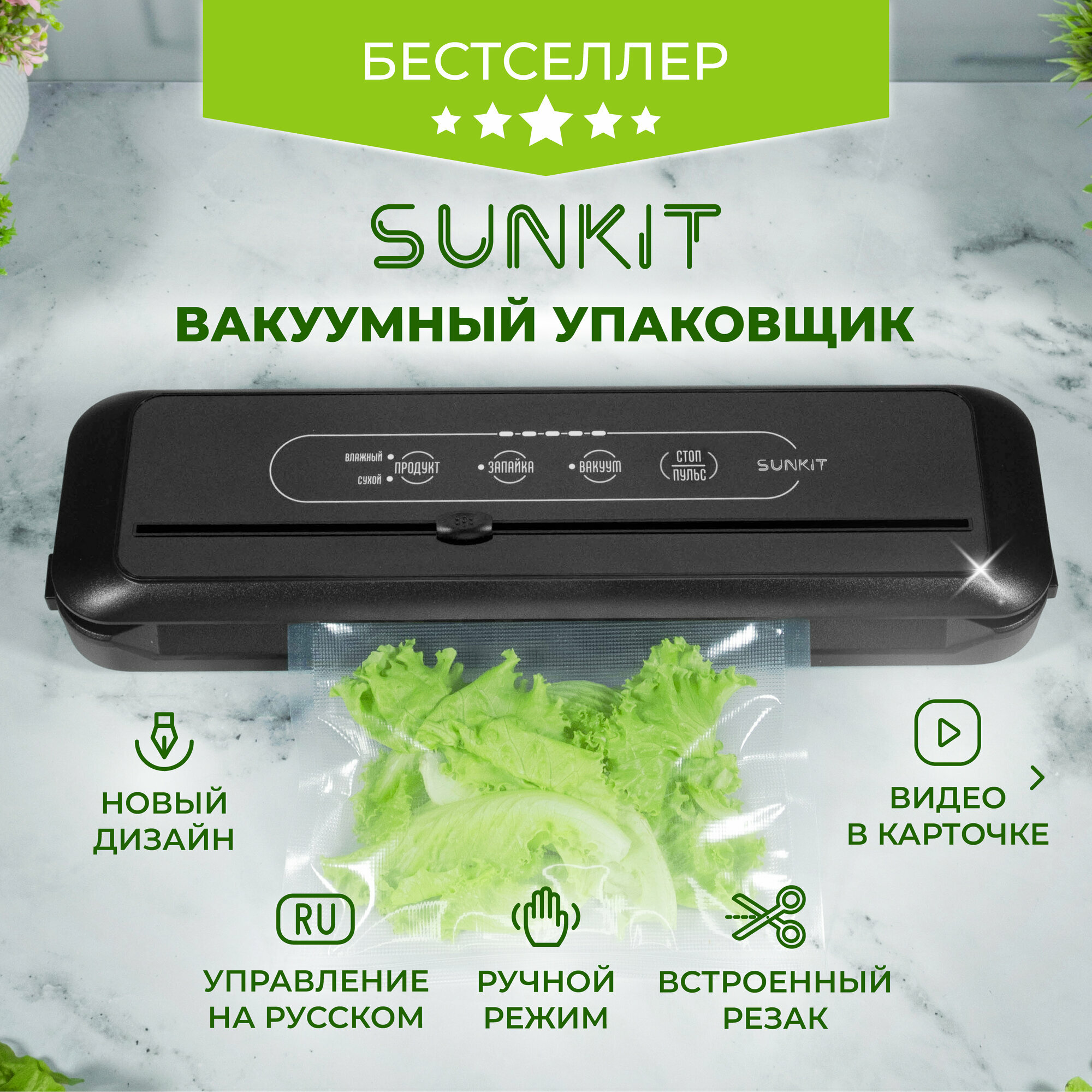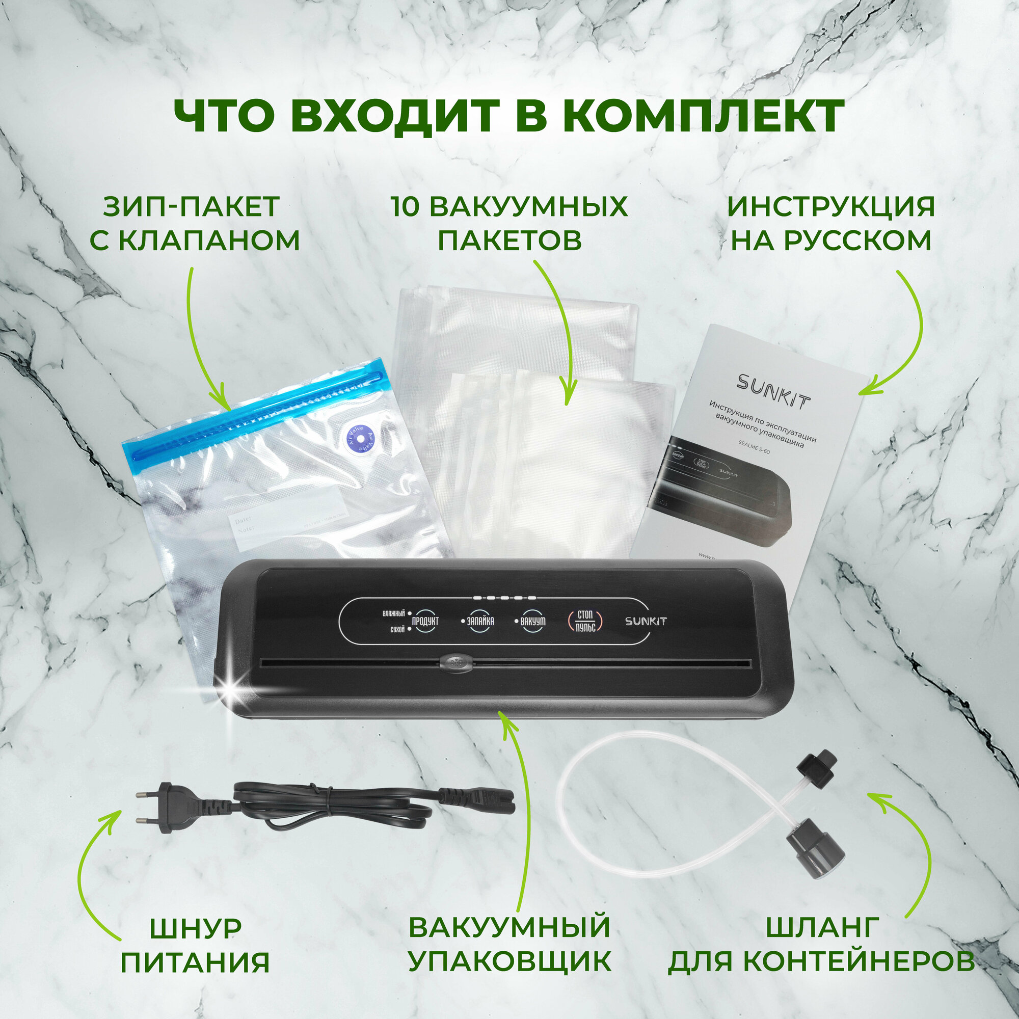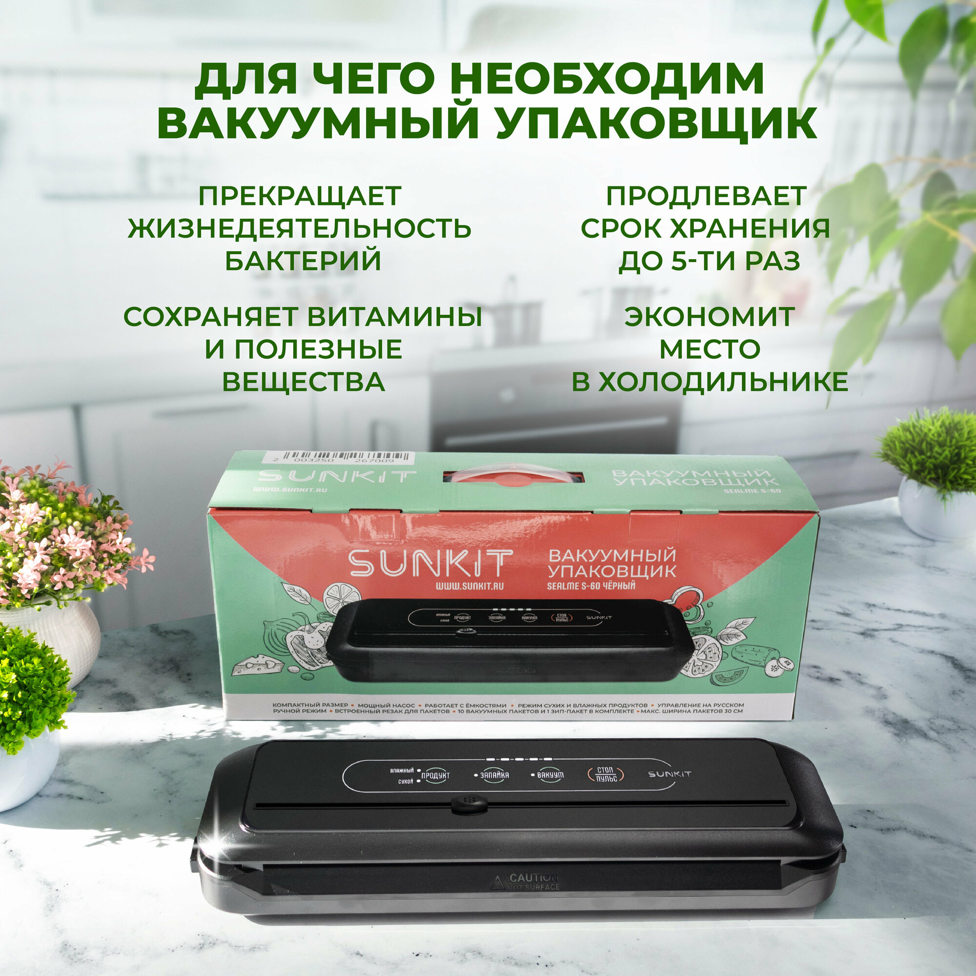 Вакуумный упаковщик: управление на русском, встроенный резак / Домашний вакууматор для продуктов SunKit SealMe S-60 +10 пакетов в подарок