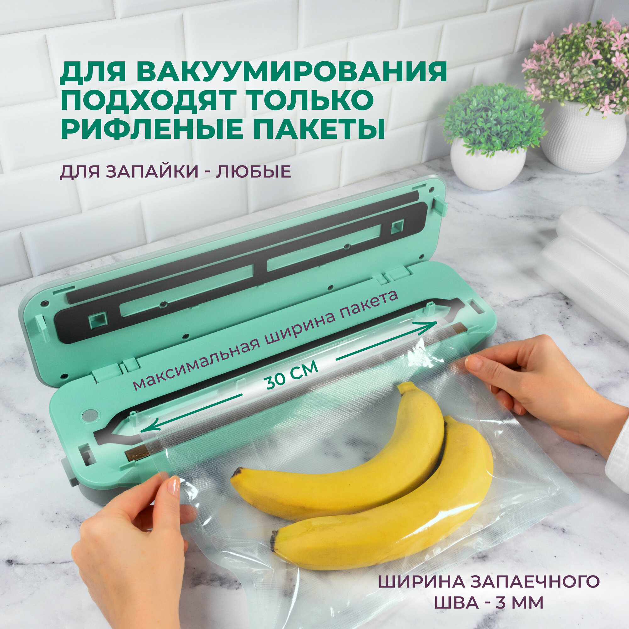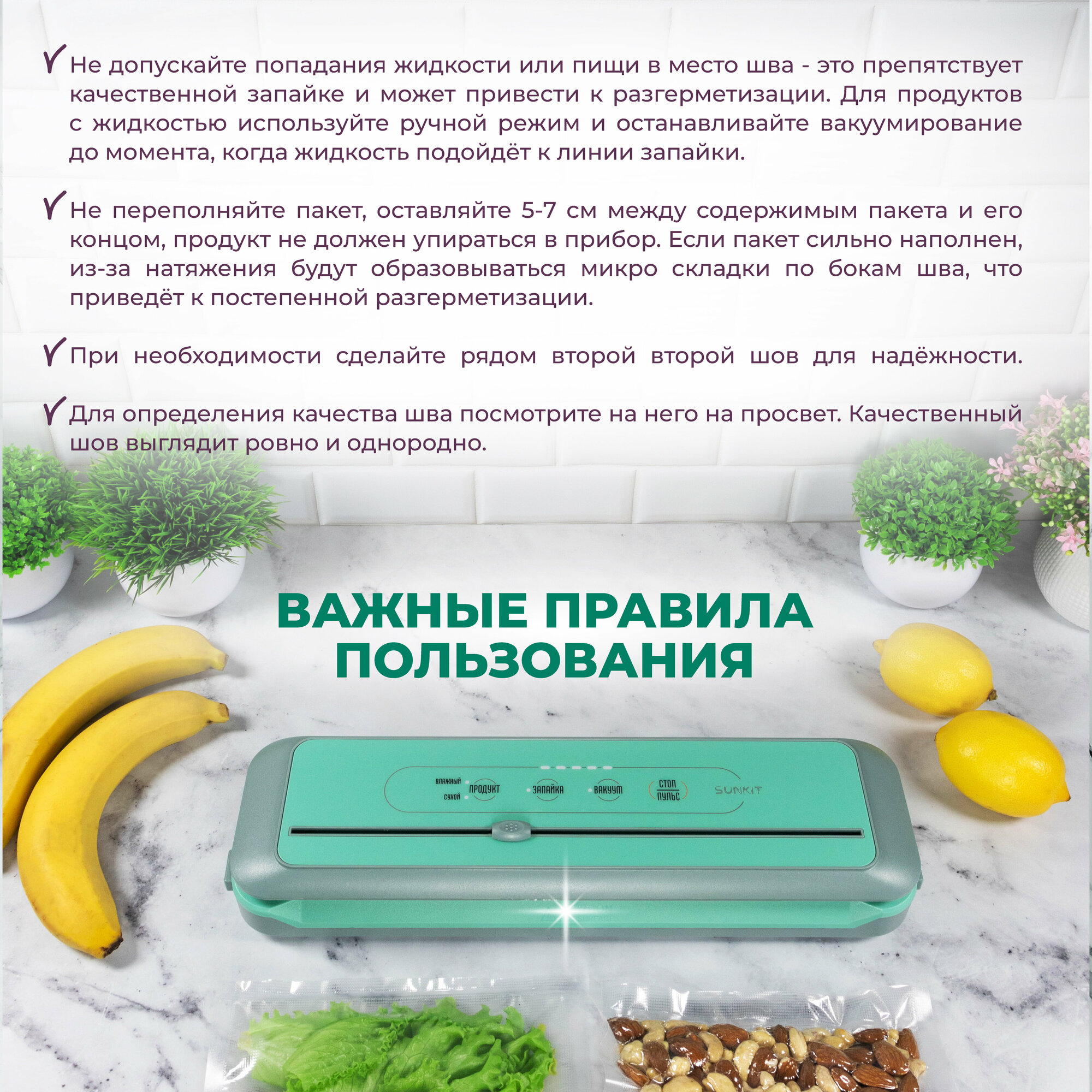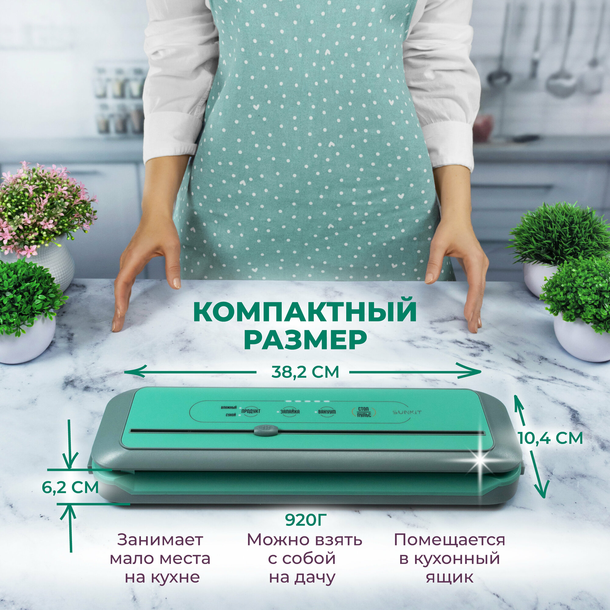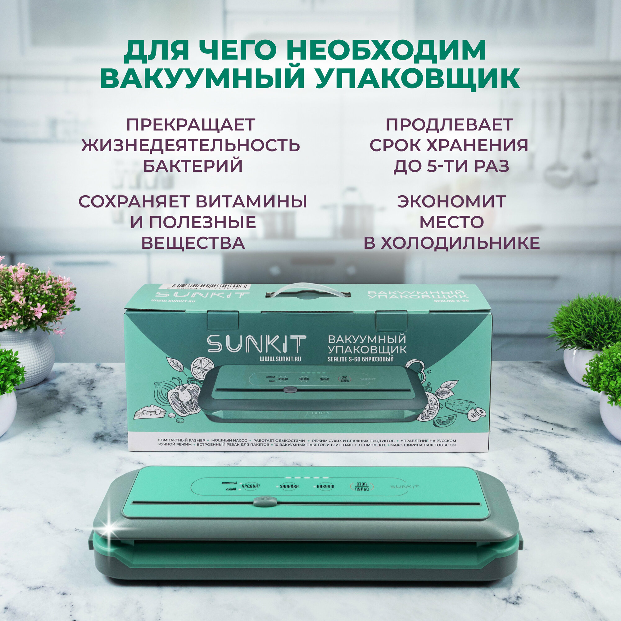 Вакуумный упаковщик: управление на русском, встроенный резак / Домашний вакууматор для продуктов SunKit SealMe S-60 +10 пакетов в подарок