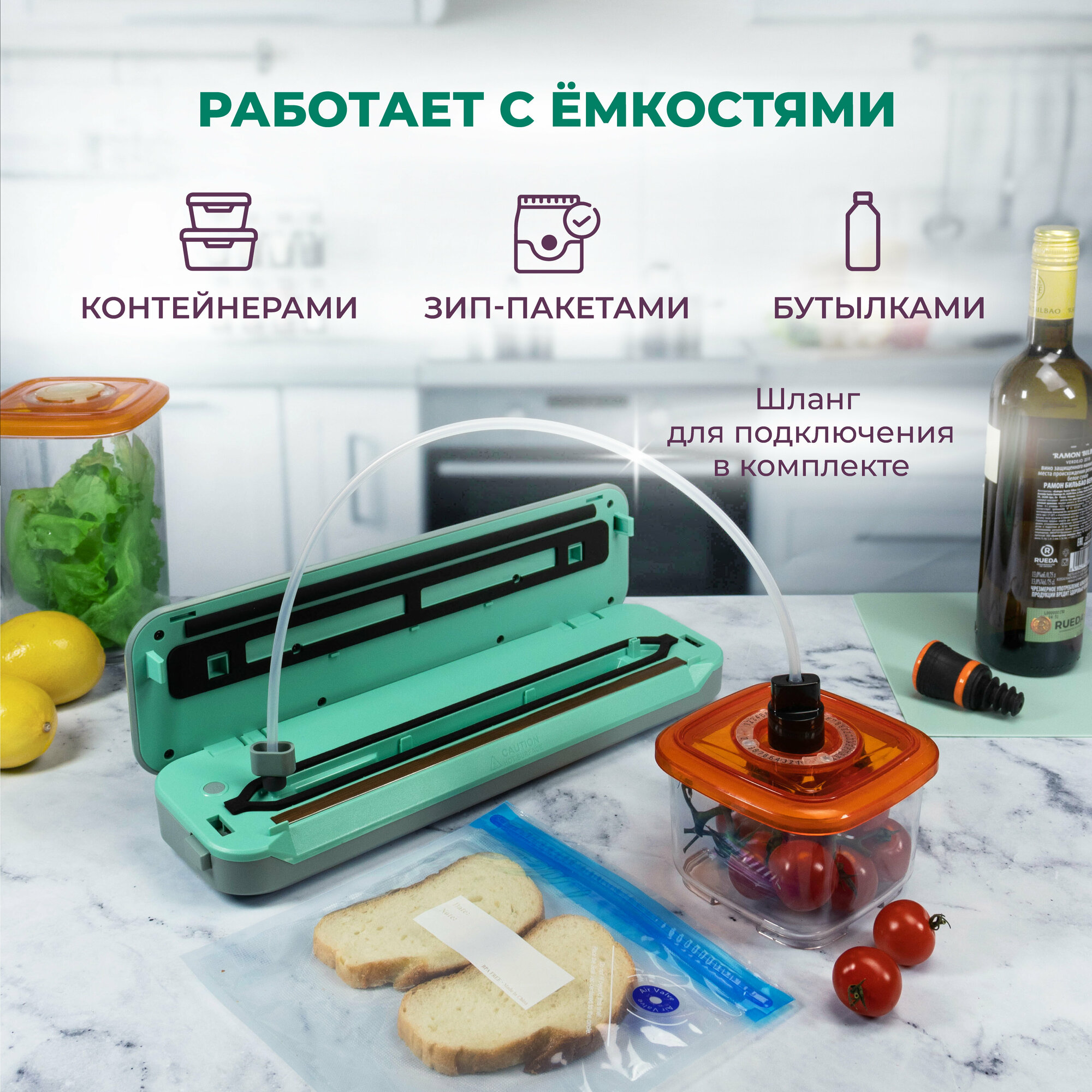 Вакуумный упаковщик SunKit SealMe S-60 с резаком, управление на русском, 7 режимов работы, мощный насос / Домашний вакууматор для продуктов - Бирюзовый