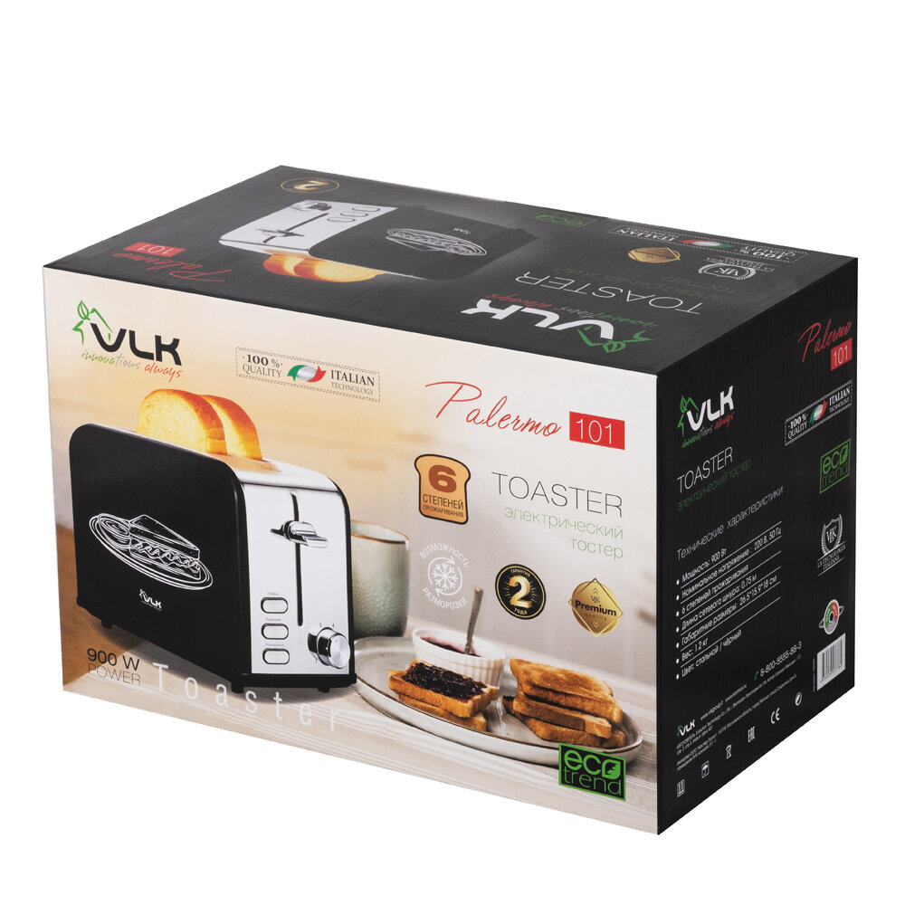 VLK Тостер электрический Palermo 101, мощность 900 Вт, цвет черный, 90281