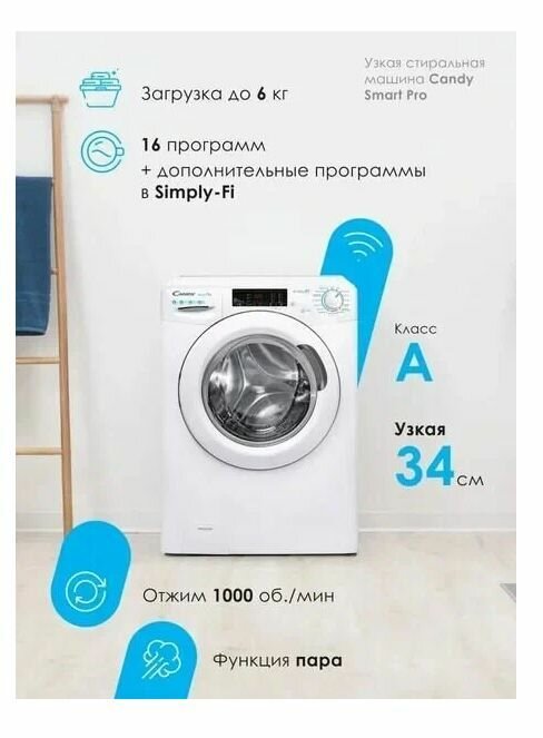 Стиральная машина Candy Smart Pro CSO34 106T1/2-07 класс: A-10% загр.фронтальная макс.:6кг белый