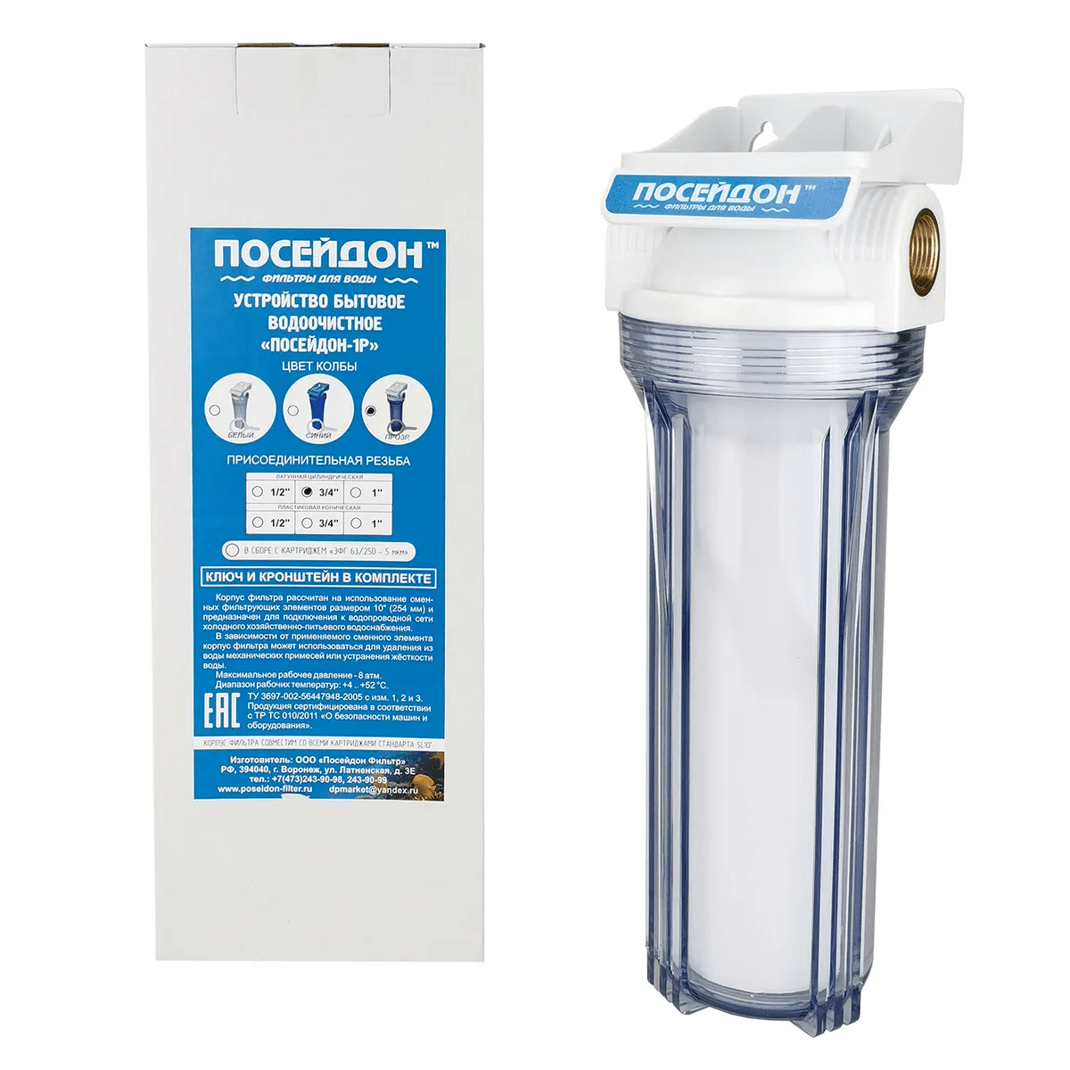 Фильтр магистральный посейдон "ПОСЕЙДОН-1Р" прозрачный 1/2" с картриджем ЭФГ 63/250 - 5 мкм. Очищает воду во всем доме. интересное: