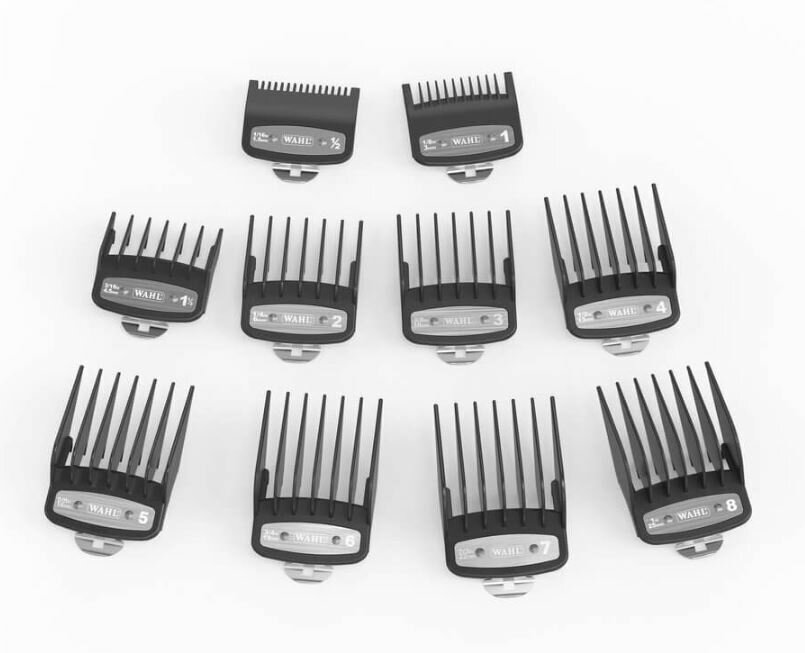 | Дополнительная информация | 10 насадок в комплекте: 1,5 мм, 3 мм, 4,5 мм, 6 мм, 10 мм, 13 мм, 16 мм, 19 мм, 22 мм, 25 мм; совместимость с Wahl 4000 Balding, 4001 ProBasic, 4003 Designer, 4004 Magic Clip/Super Taper X-Lid, 4005 Chrome Super Taper, 4006 Taper 2000, 4008 Super Taper, 4020 Icon, 4219 Cordless Super Taper, 8147 Legend, 8148 Cordless Magic Clip, 8470 Wood Taper, 8504 Cordless Senior, 1919 100 Year Cordless Senior |