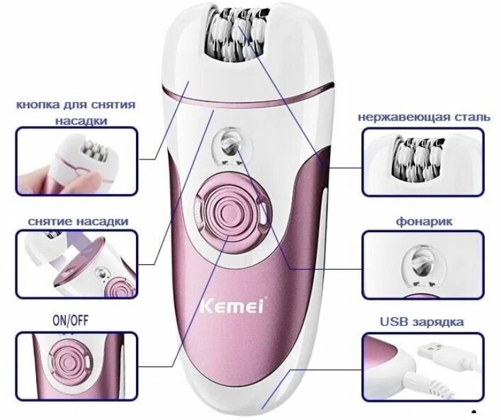 Эпилятор многофункциональный 4в1 женский Kemei km-1307 интересное: